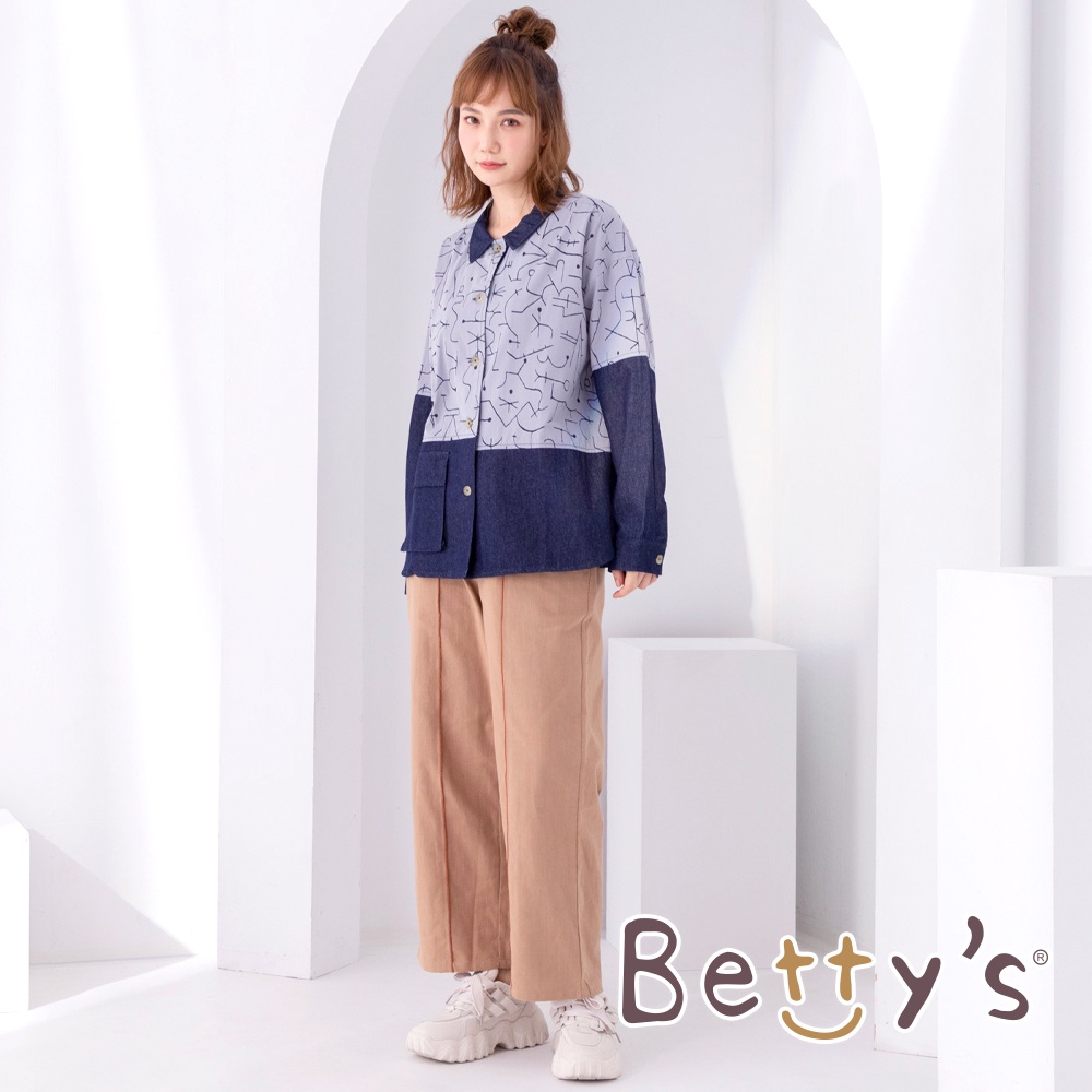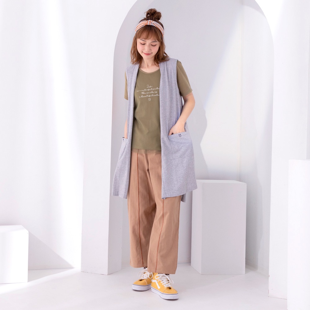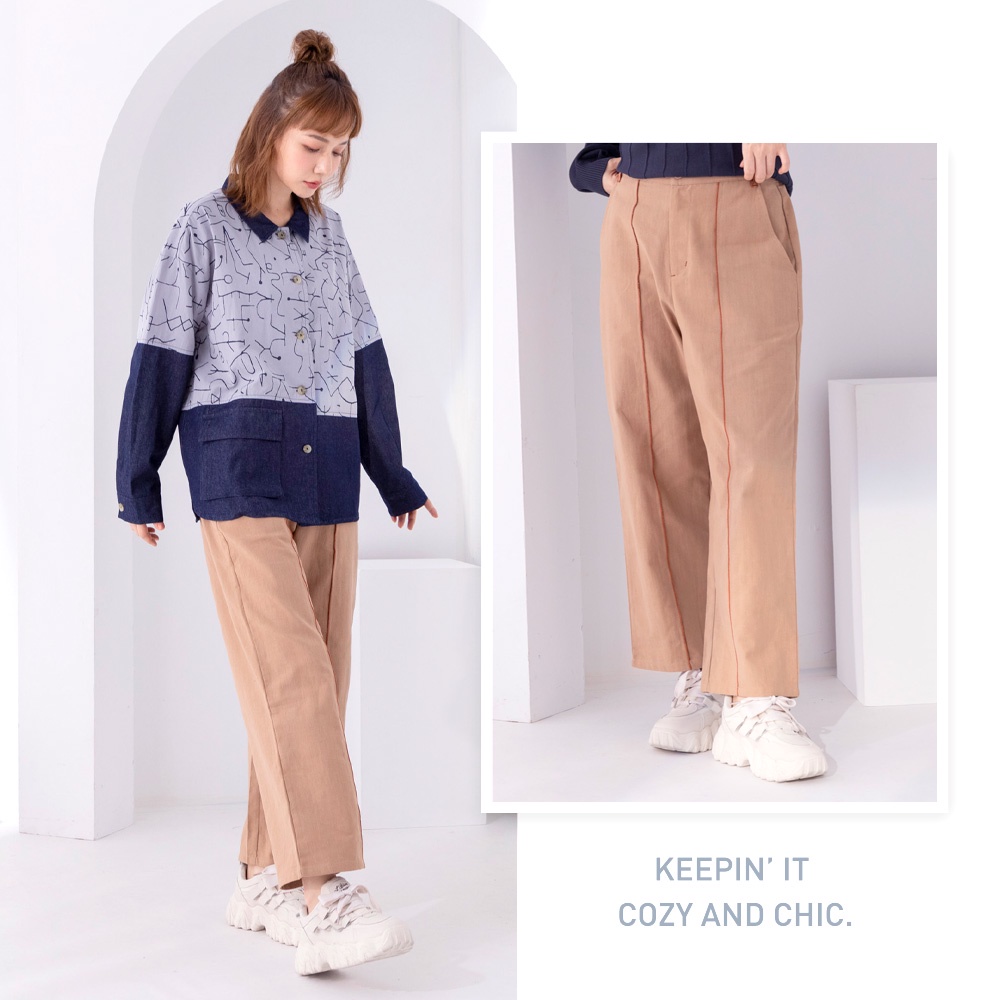 betty’s貝蒂思(05)撞色線條低褲檔寬版褲(深卡其)