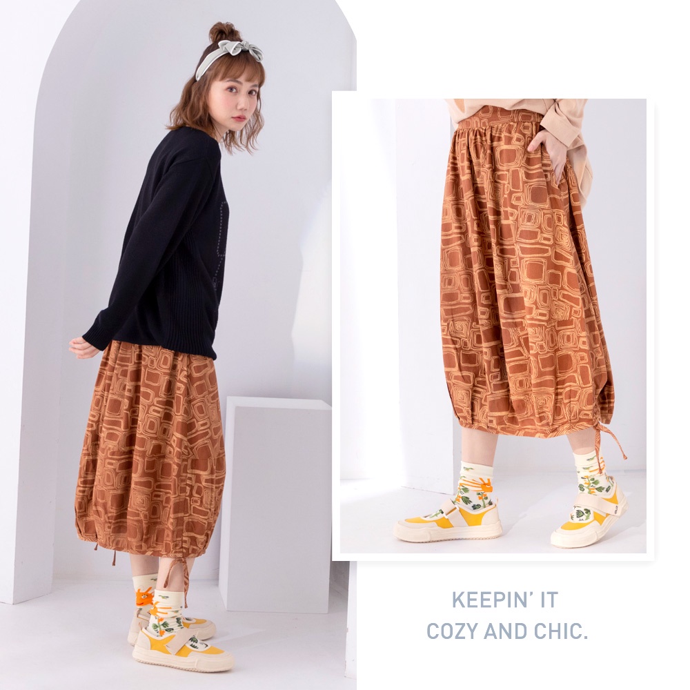 betty’s貝蒂思(05)幾何印花抽繩長裙(咖啡色)