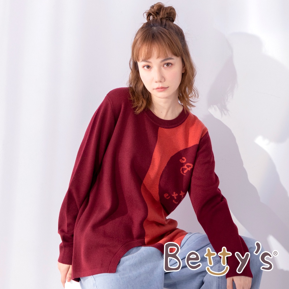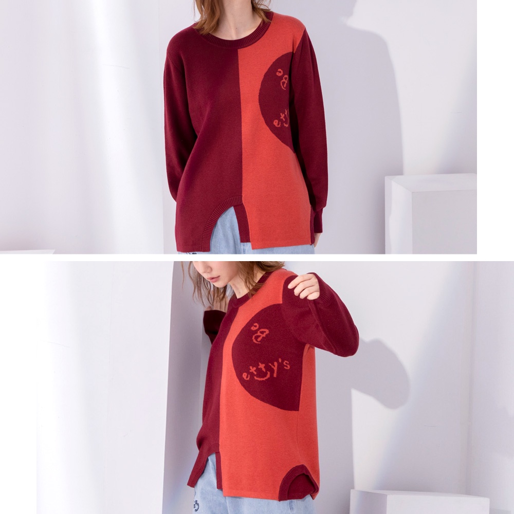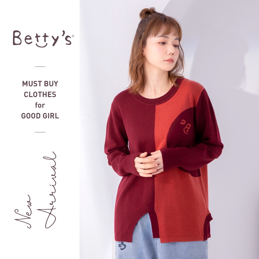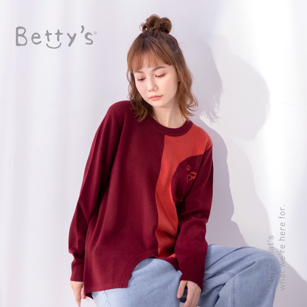 betty’s貝蒂思(05)圓領拼色質感毛衣(暗紅)