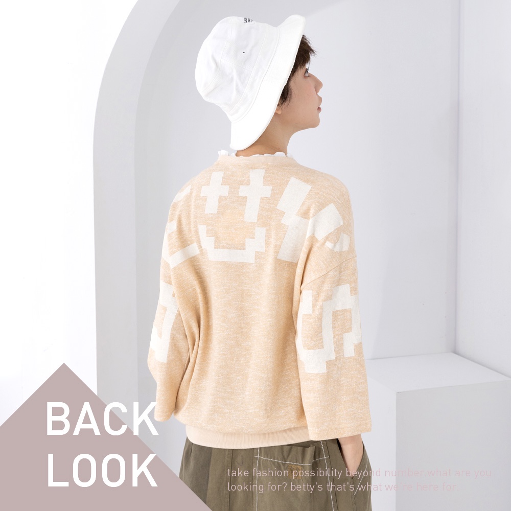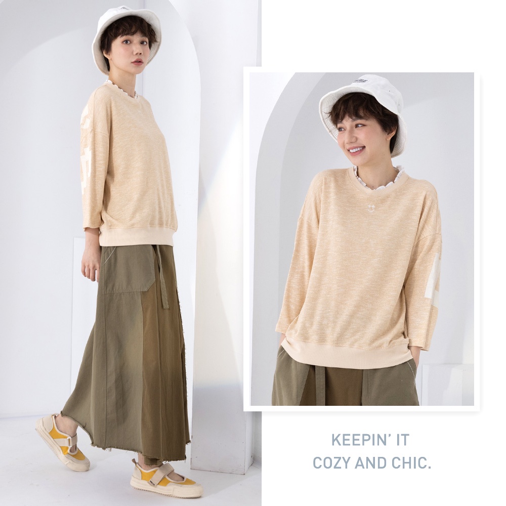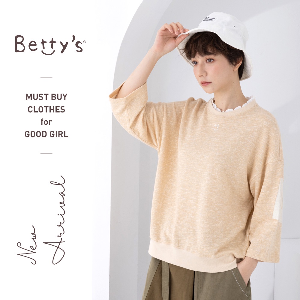 betty’s貝蒂思(05)荷葉領羅紋印花T-shirt(卡其)