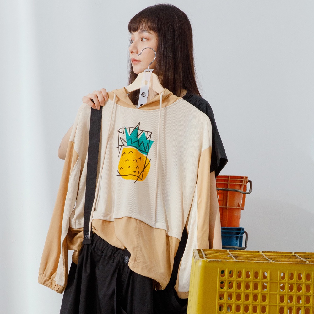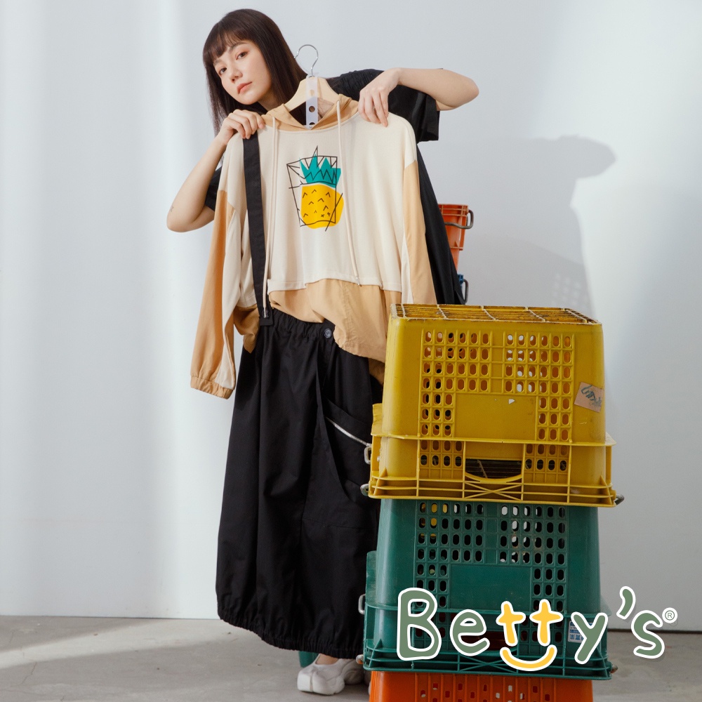 betty’s貝蒂思(11)鳳梨印花拼布連帽T-shirt (卡其)