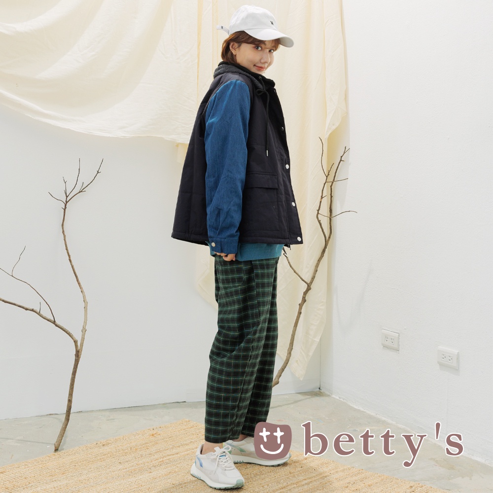 betty’s貝蒂思(15)牛仔布袖拼接假兩件外套(深藍)