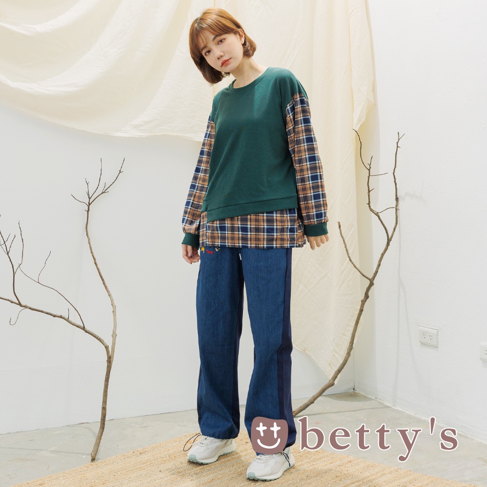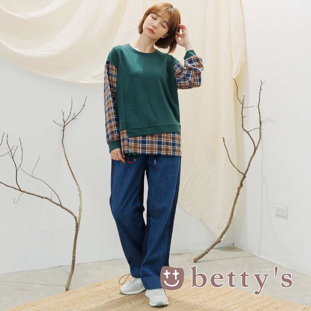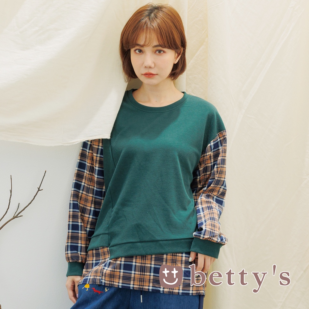 betty’s貝蒂思(15)假兩件拼接格子布上衣(綠色)