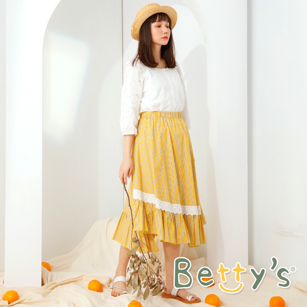 betty’s貝蒂思(11)條紋荷葉壓蕾絲長裙 (深黃)