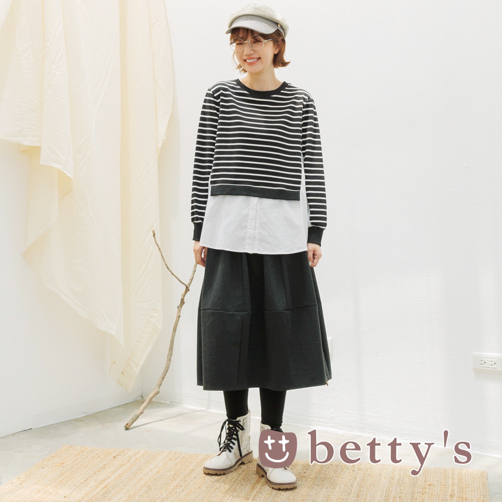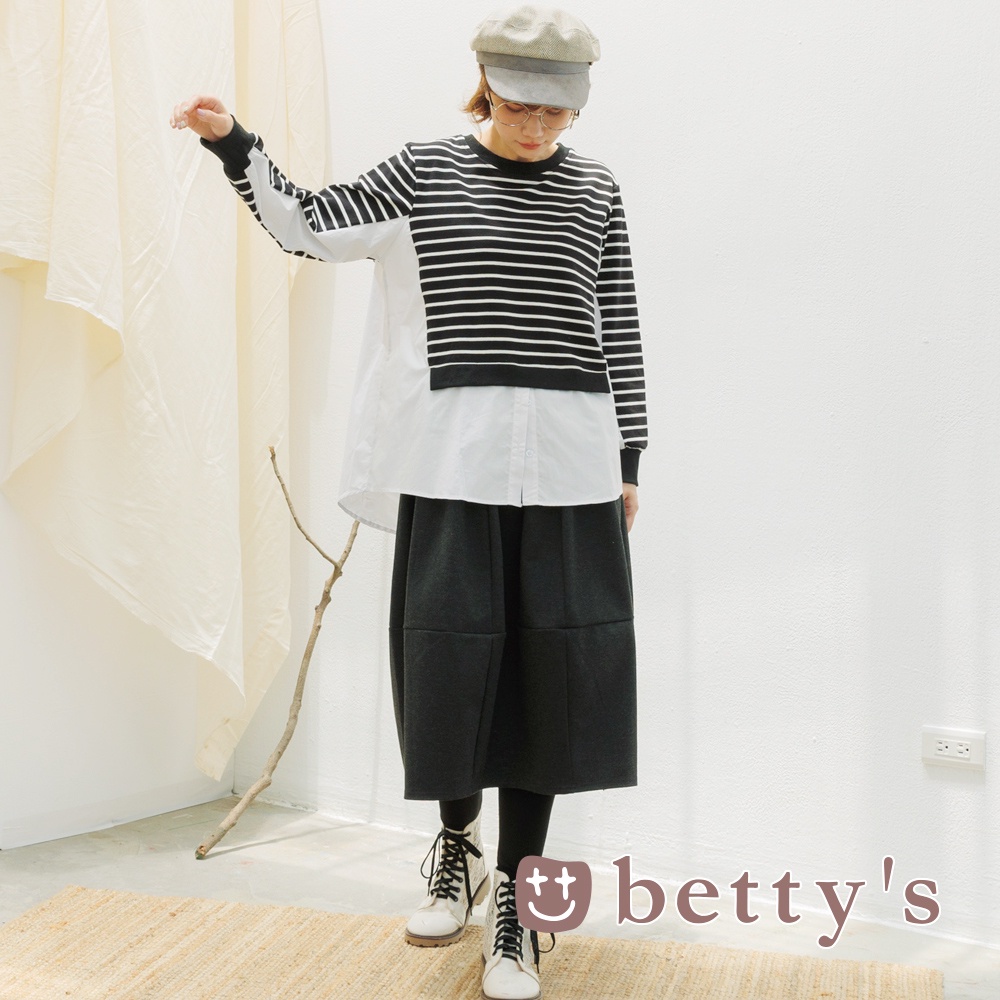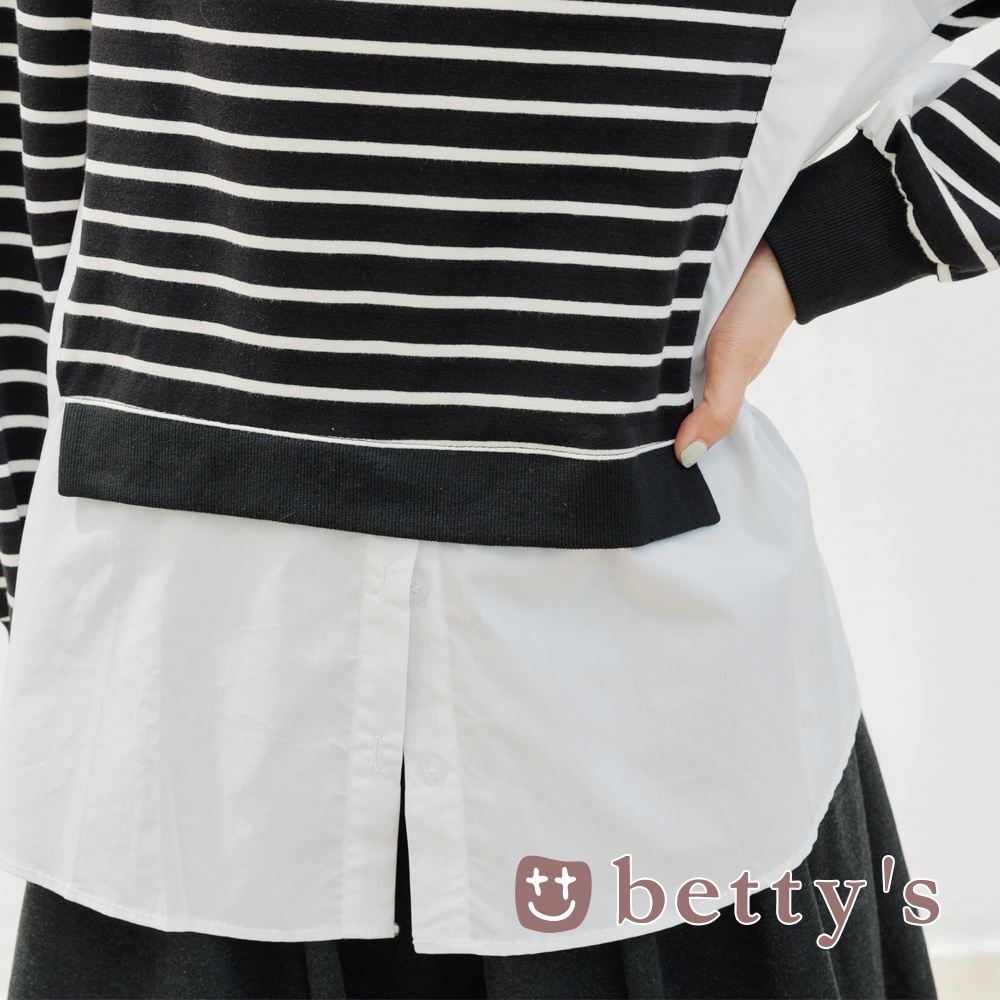 betty’s貝蒂思(15)假兩件條紋布拼接上衣(黑色)