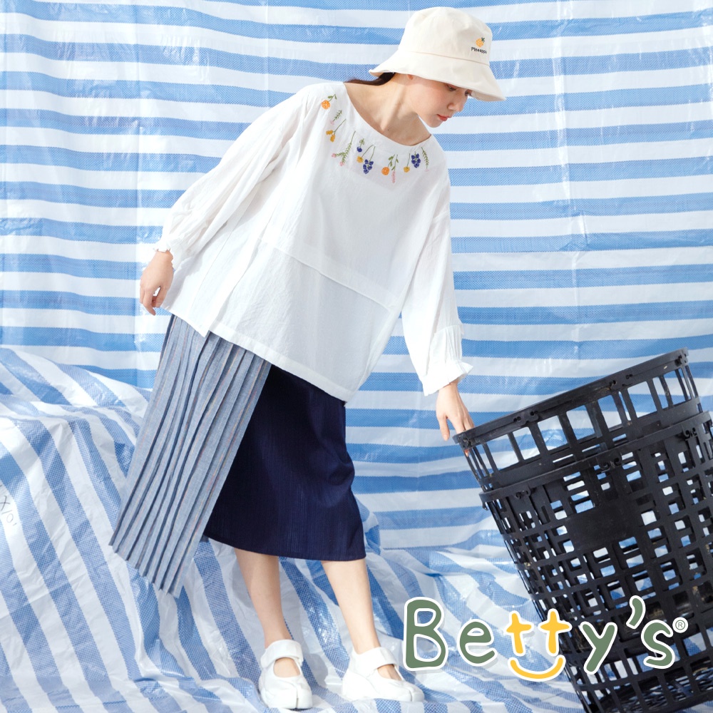 betty’s貝蒂思(11)可拆百褶拼接中長裙 (藍灰色)