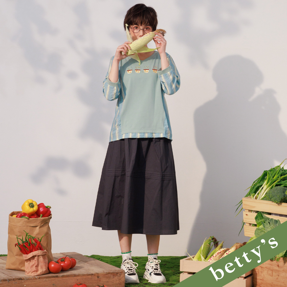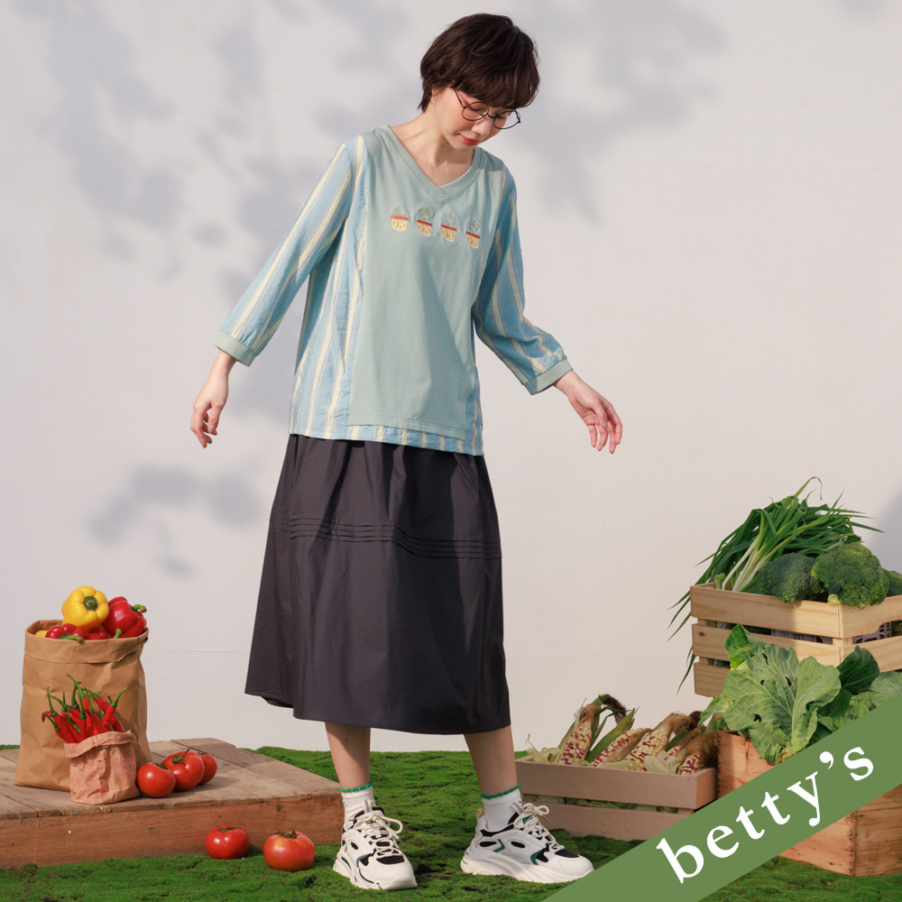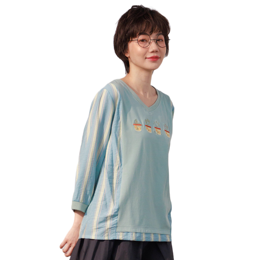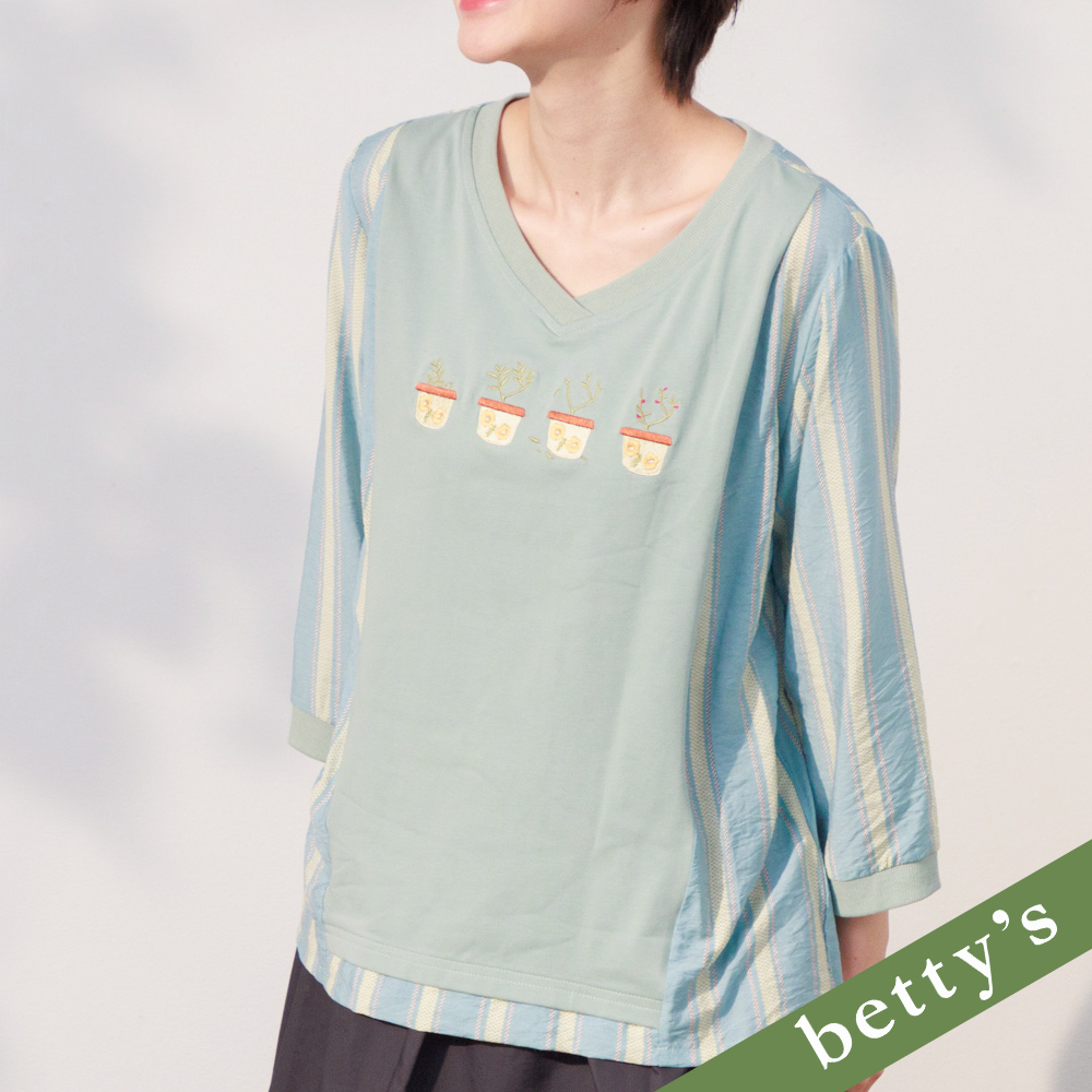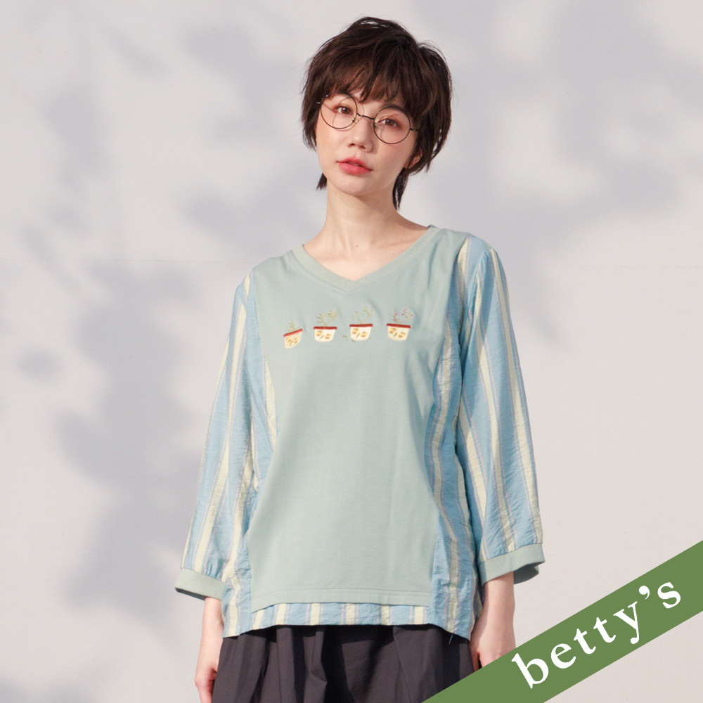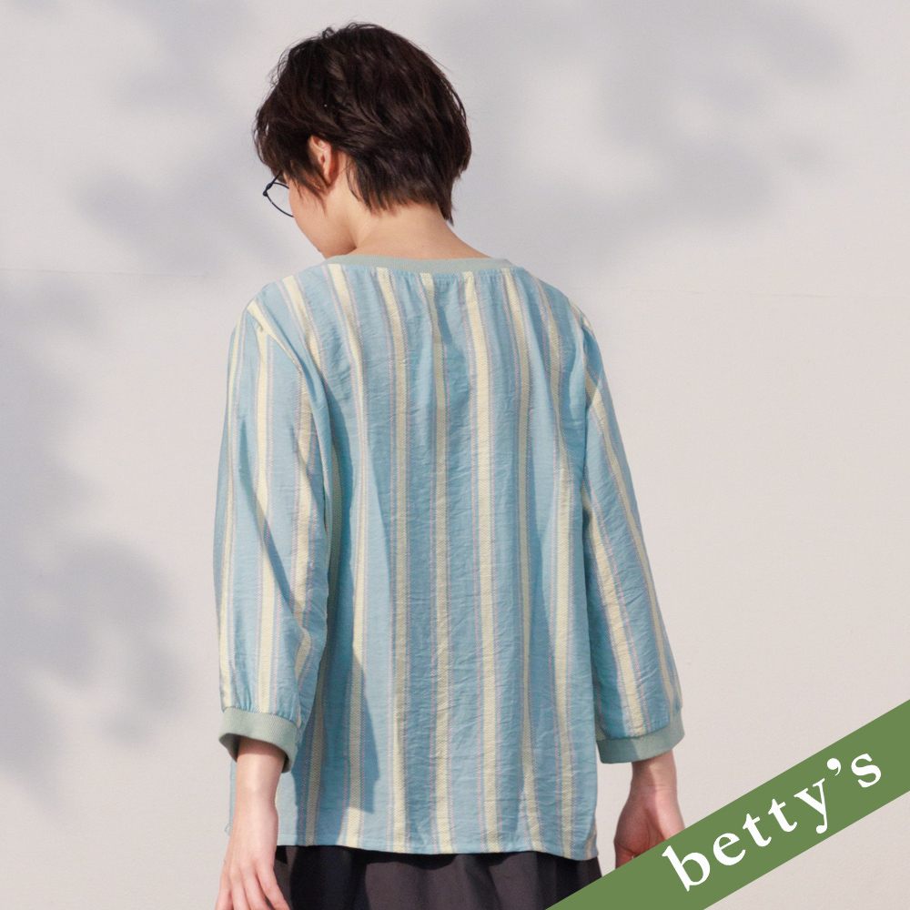 betty’s貝蒂思(21)交叉羅紋領條紋七分袖上衣(淺綠)
