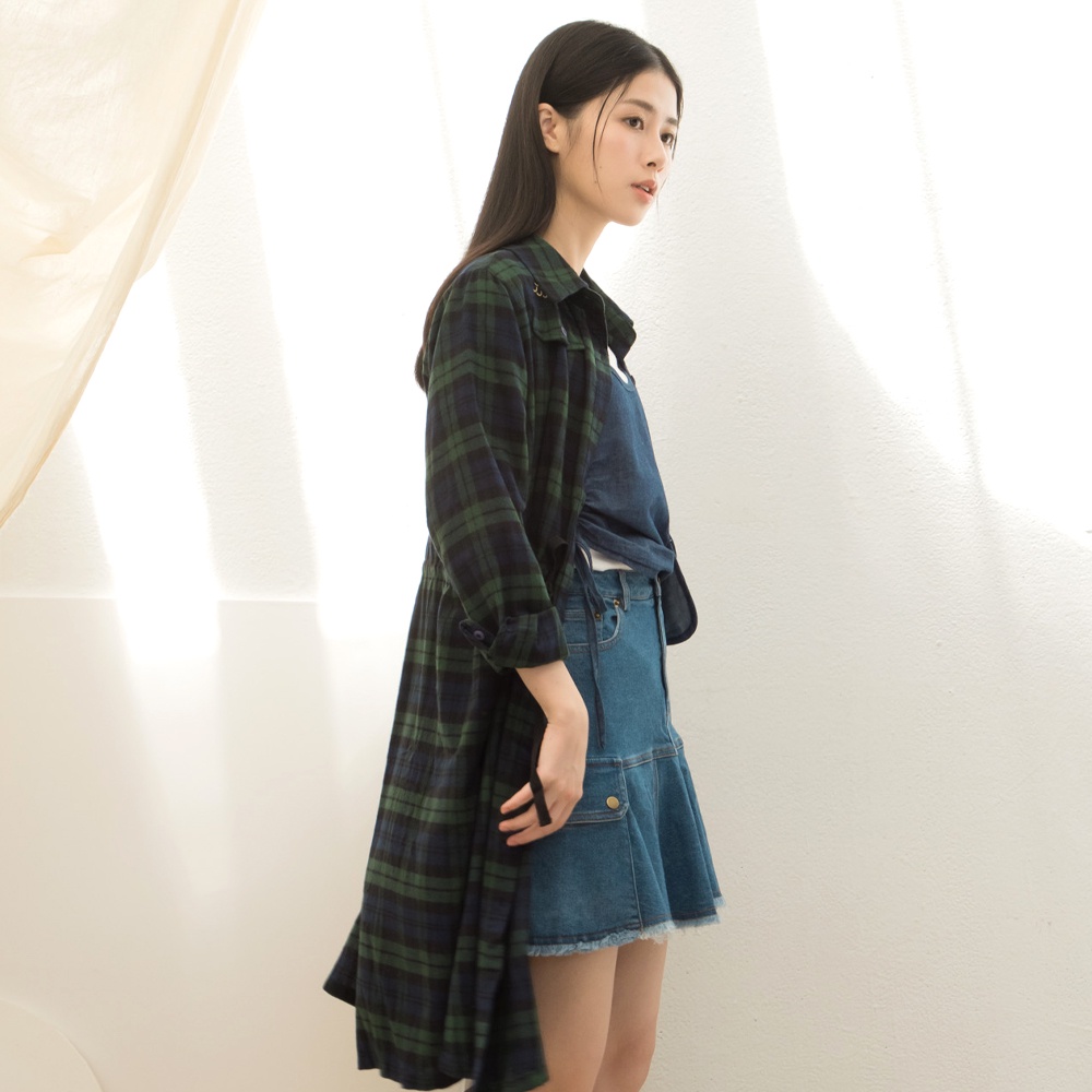 betty’s貝蒂思(15)格子布腰間抽繩洋裝(綠色)