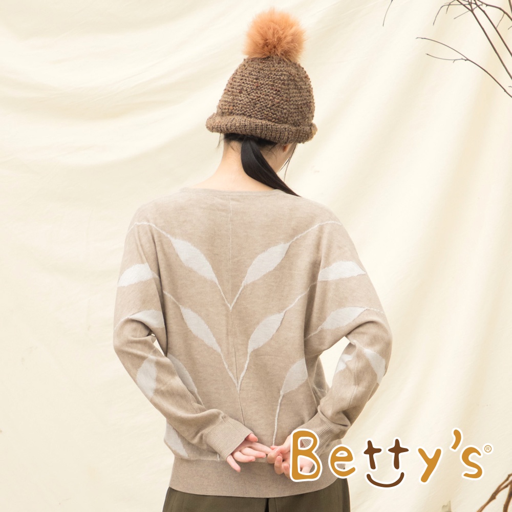 betty’s貝蒂思(15)樹葉織紋寬袖針織毛衣(卡其)