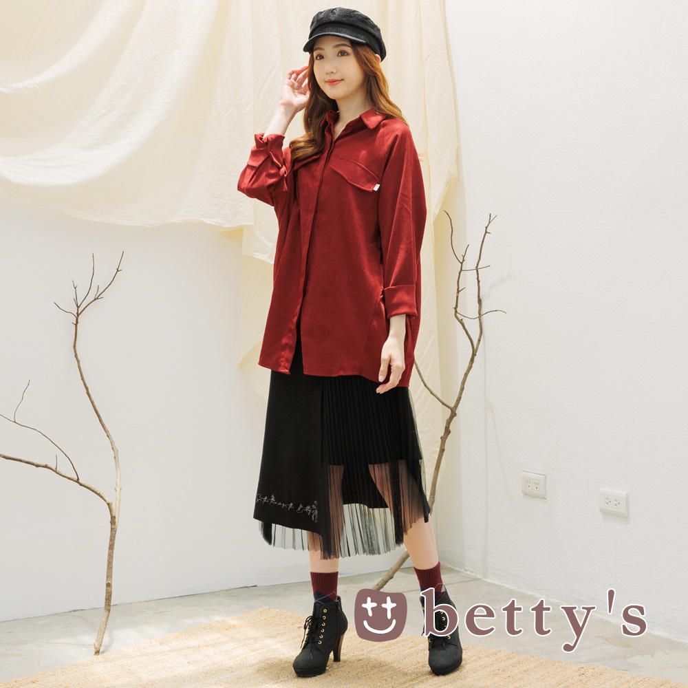 betty’s貝蒂思(15)寬版腰帶素色襯衫(暗紅)