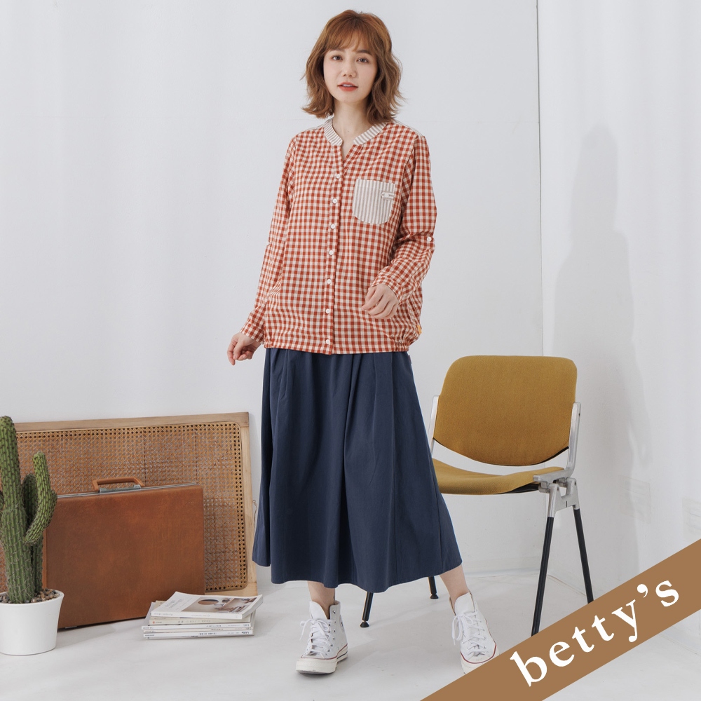 betty’s貝蒂思(25)鬆緊拼接素色長裙(深藍色)