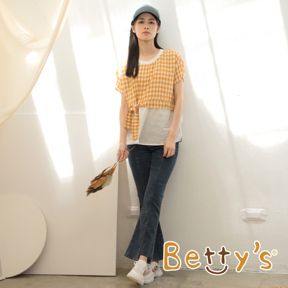 betty’s貝蒂思(15)假兩件格子綁帶上衣(深黃)