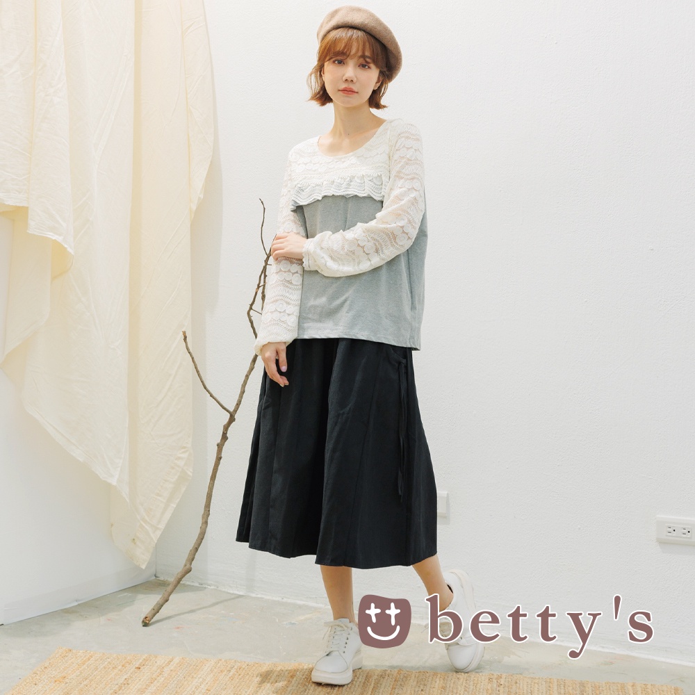 betty’s貝蒂思(15)蝴蝶結口袋刷絨中長裙(黑色)
