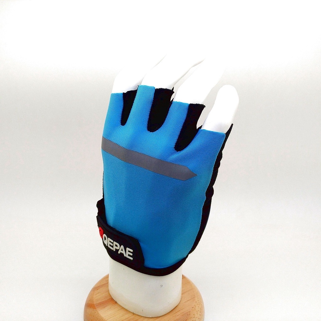 【路達自行車衣百貨】QEPAE 矽膠橫條反光自行車手套 17820005 藍色
