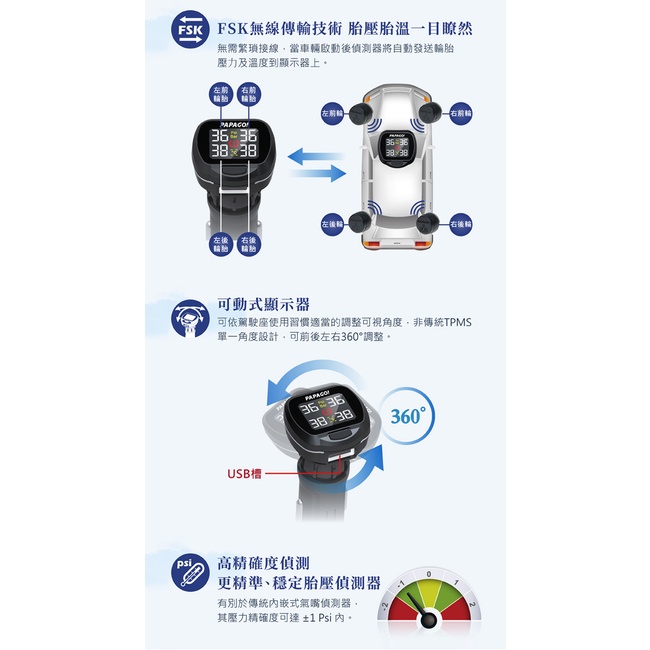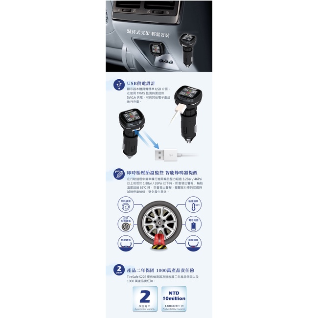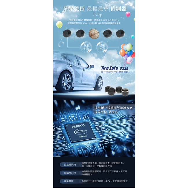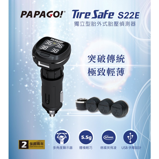 PAPAGO TireSafe S22E 獨立型胎外式胎壓偵測器(兩年保固)