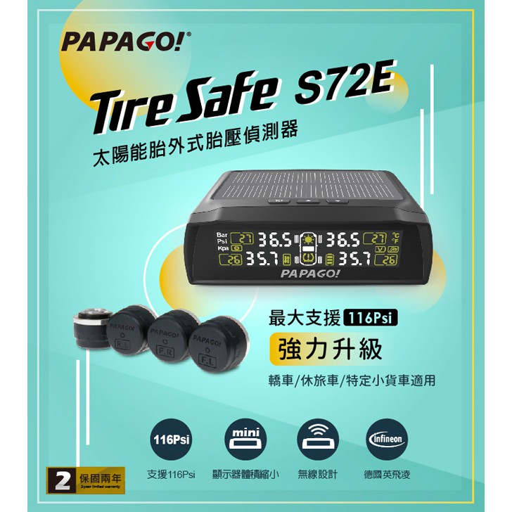 PAPAGO TireSafe S72E無線太陽能胎外式輕巧胎壓偵測器 兩年保固
