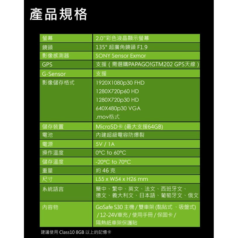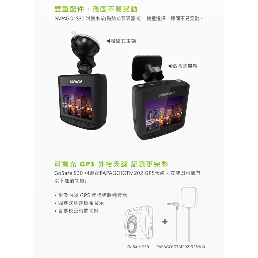 PAPAGO! GoSafe S30 sony sensor Full HD行車記錄器 車充/車架皆有些微刮傷 福利品