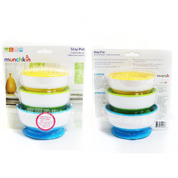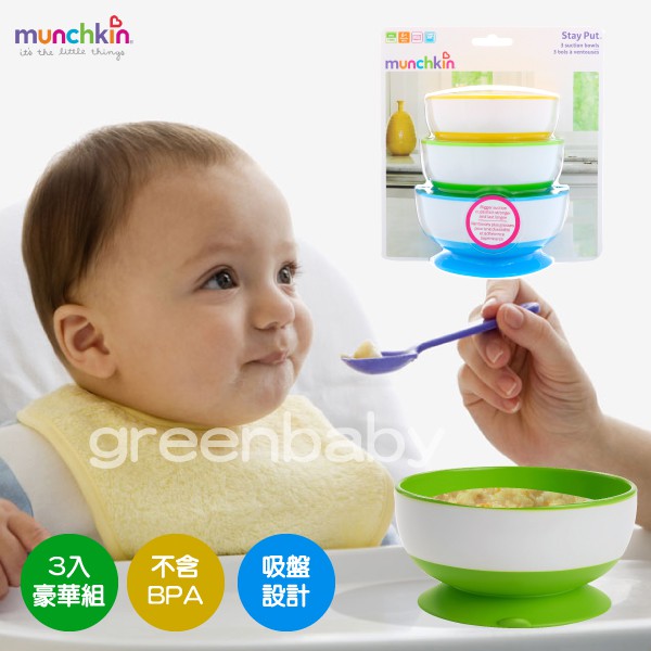 Munchkin 幼兒吸盤碗三入 防漏止滑 嬰兒訓練碗 兒童碗 餐碗 防摔 BPA free 美國代購 正品 綠寶貝