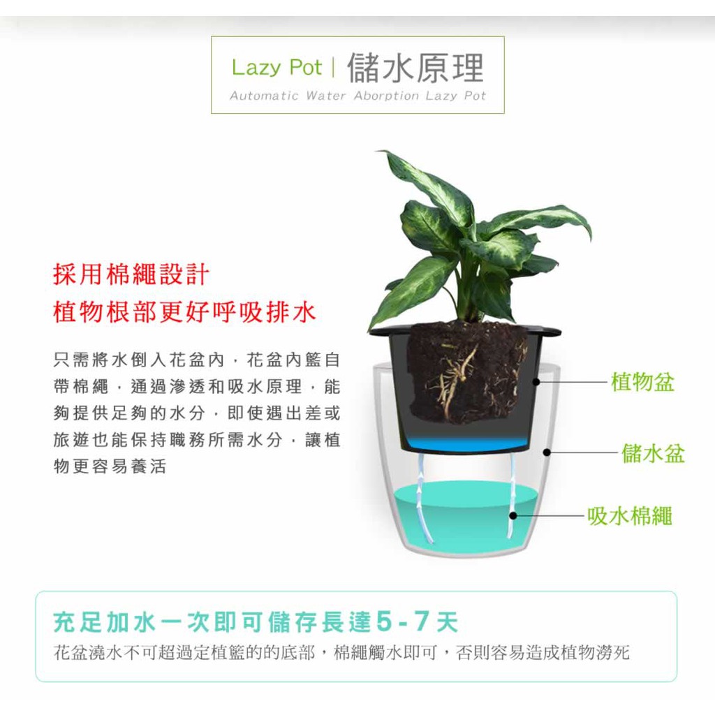 BOSSWELL博士韋爾 自動吸水 棉繩吸水 植物盆栽 植栽 澆花 澆水儲水 淨化空氣 清淨 正方形 懶人盆栽 (PE)