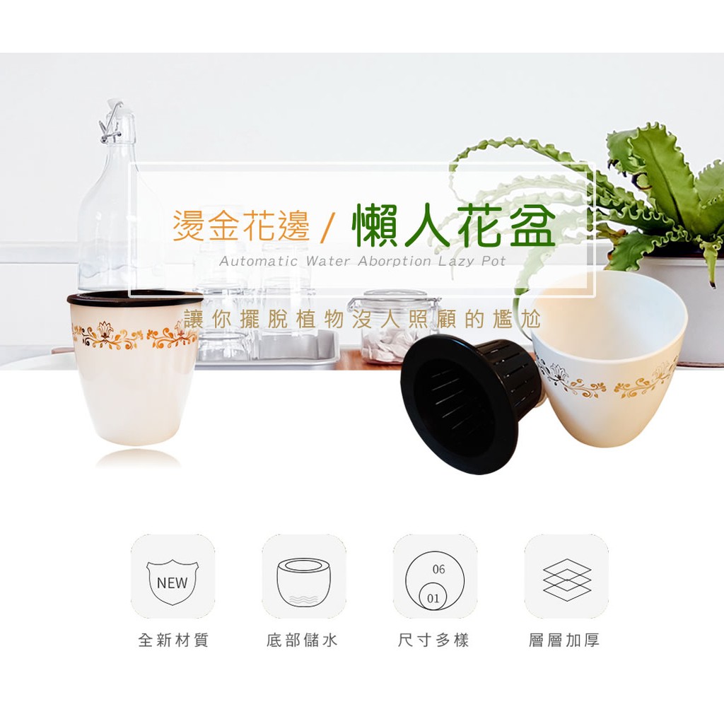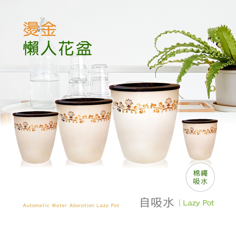 BOSSWELL博士韋爾 (22x22.5CM) 特大 燙金花邊 自動吸水 棉繩吸水 植物盆栽 儲水 懶人盆栽