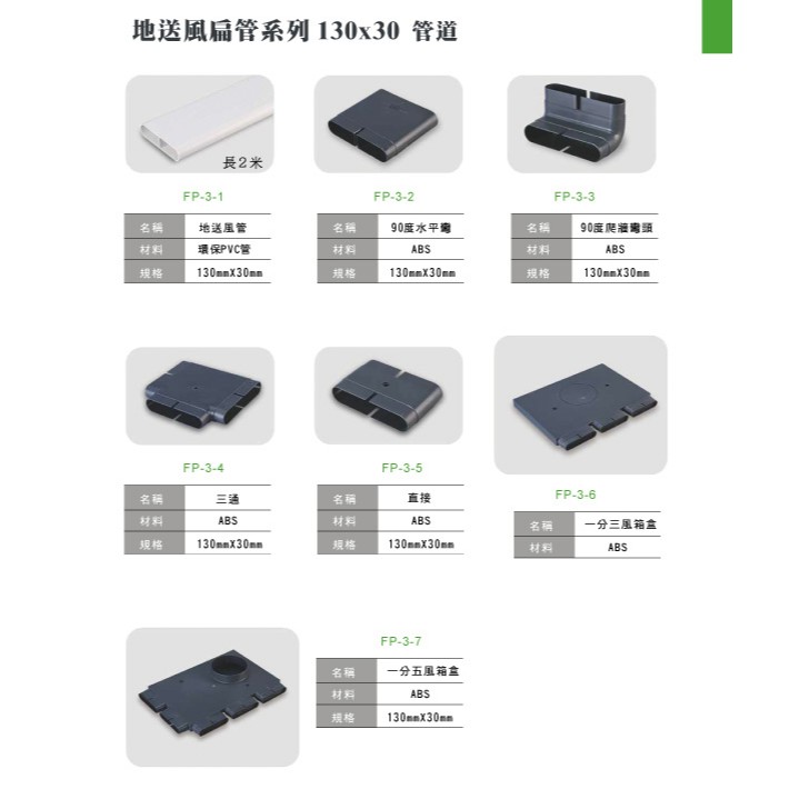 Bosswell 博士韋爾 全熱新風交換配件 直接 【FP-3-5】 地送風扁管系列 130X30 管道