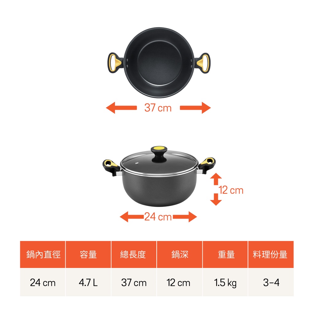 【MEYER 美亞】輕量不沾鍋 24CM 雙耳湯鍋 (含蓋) - NEW SKYLINE系列