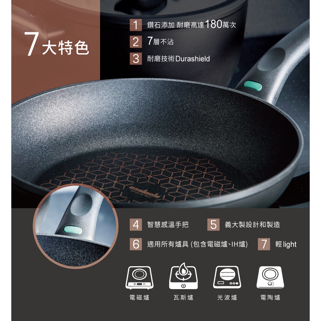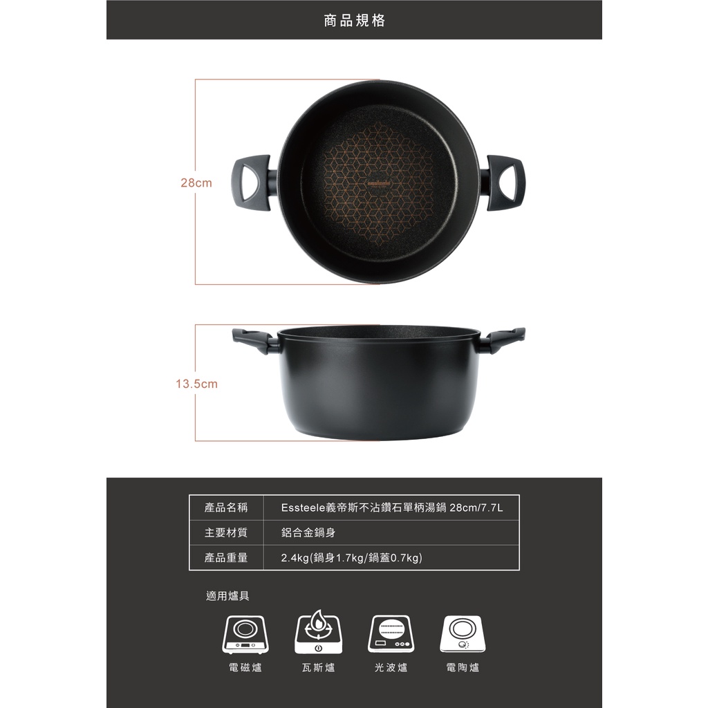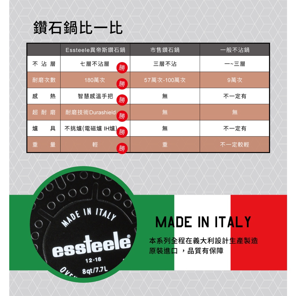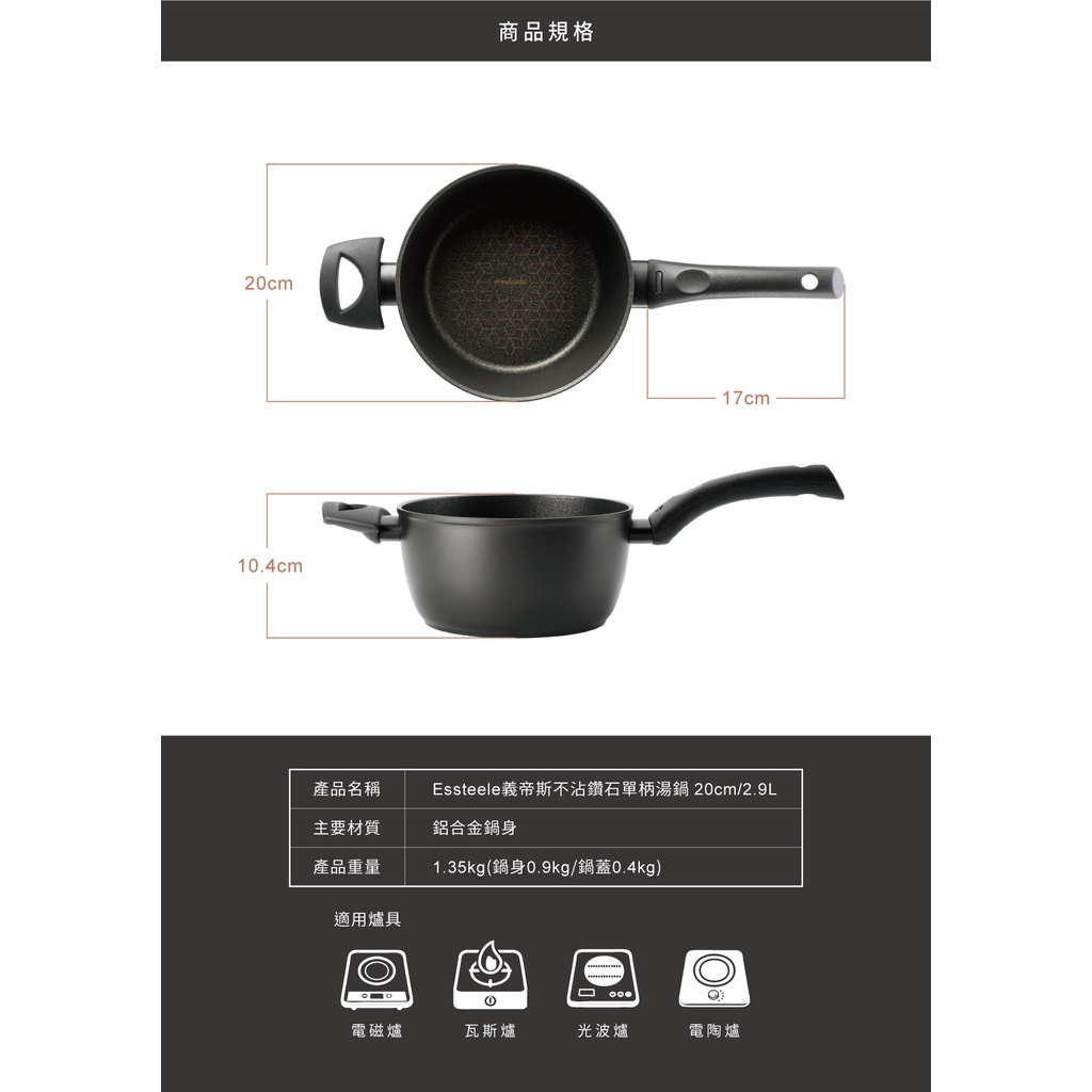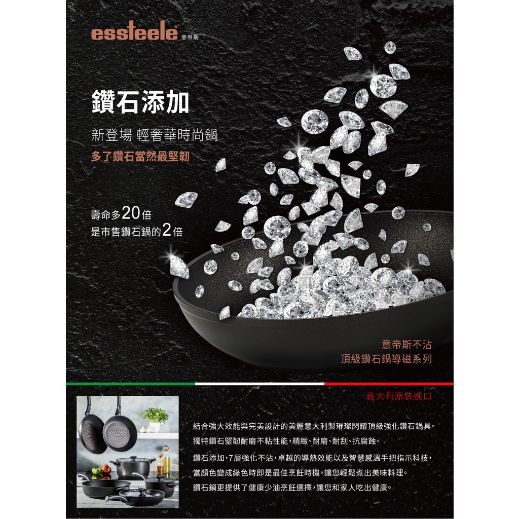 義大利製【ESSTEELE意帝斯】IH智慧感溫手把 鑽石不沾鍋 20CM單柄湯鍋/28CM雙耳湯鍋(含蓋)