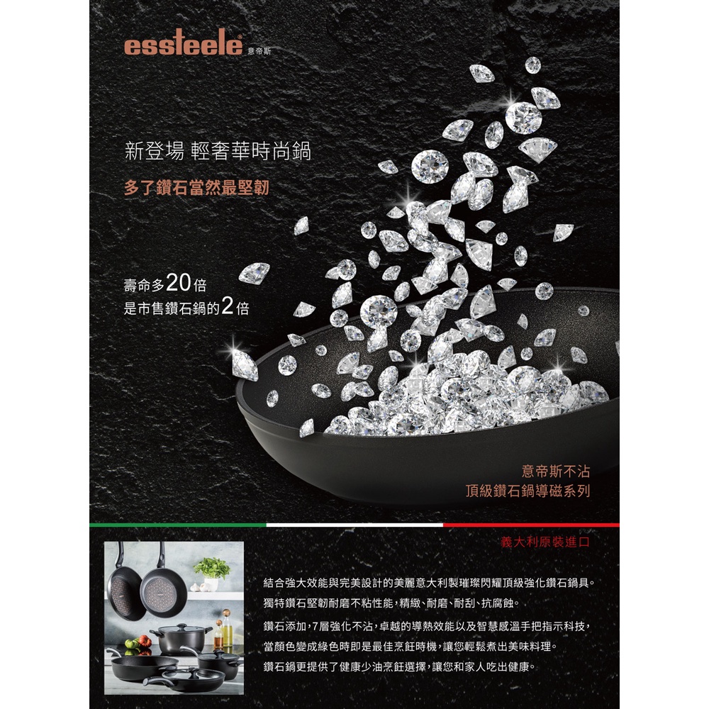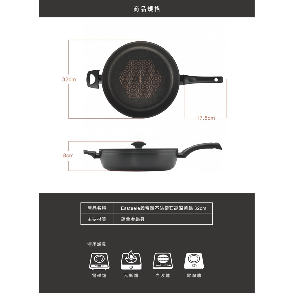 義大利製【ESSTEELE意帝斯】IH智慧感溫手把 鑽石不沾鍋 32CM深炒鍋/32CM炒鍋(含蓋)