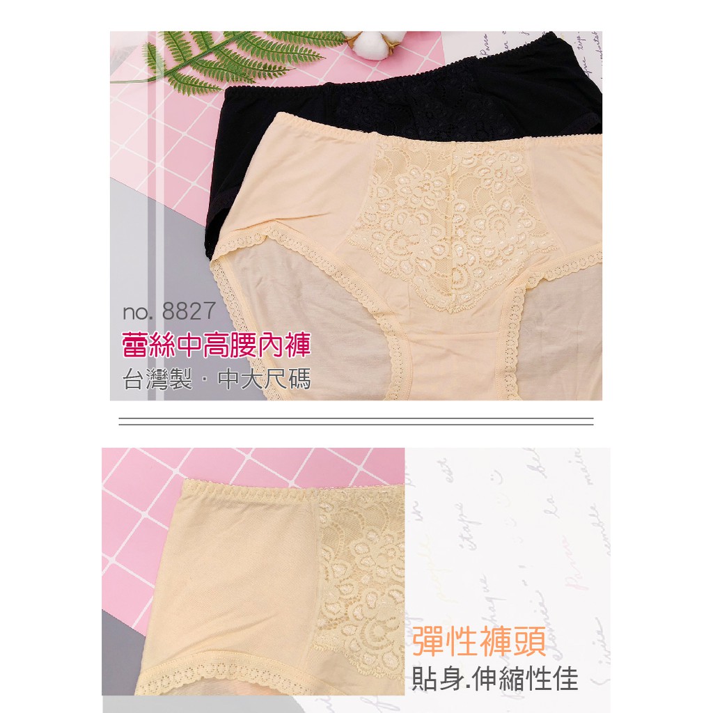 【席艾妮 台灣製】MIT舒適蕾絲中高腰內褲 no.8827 女內褲三角褲 大尺碼中大尺碼大碼性感純色內褲 [現貨附發票]
