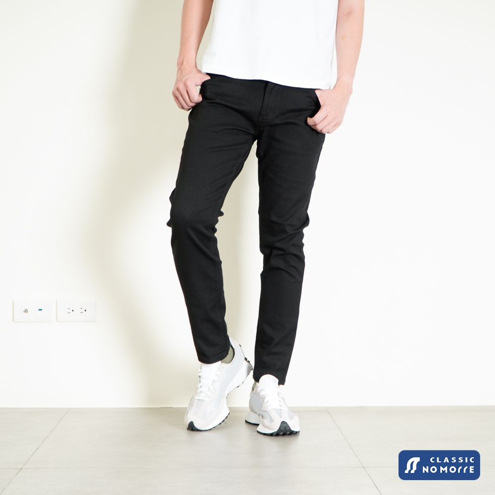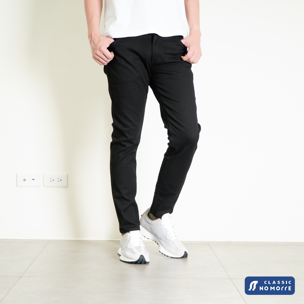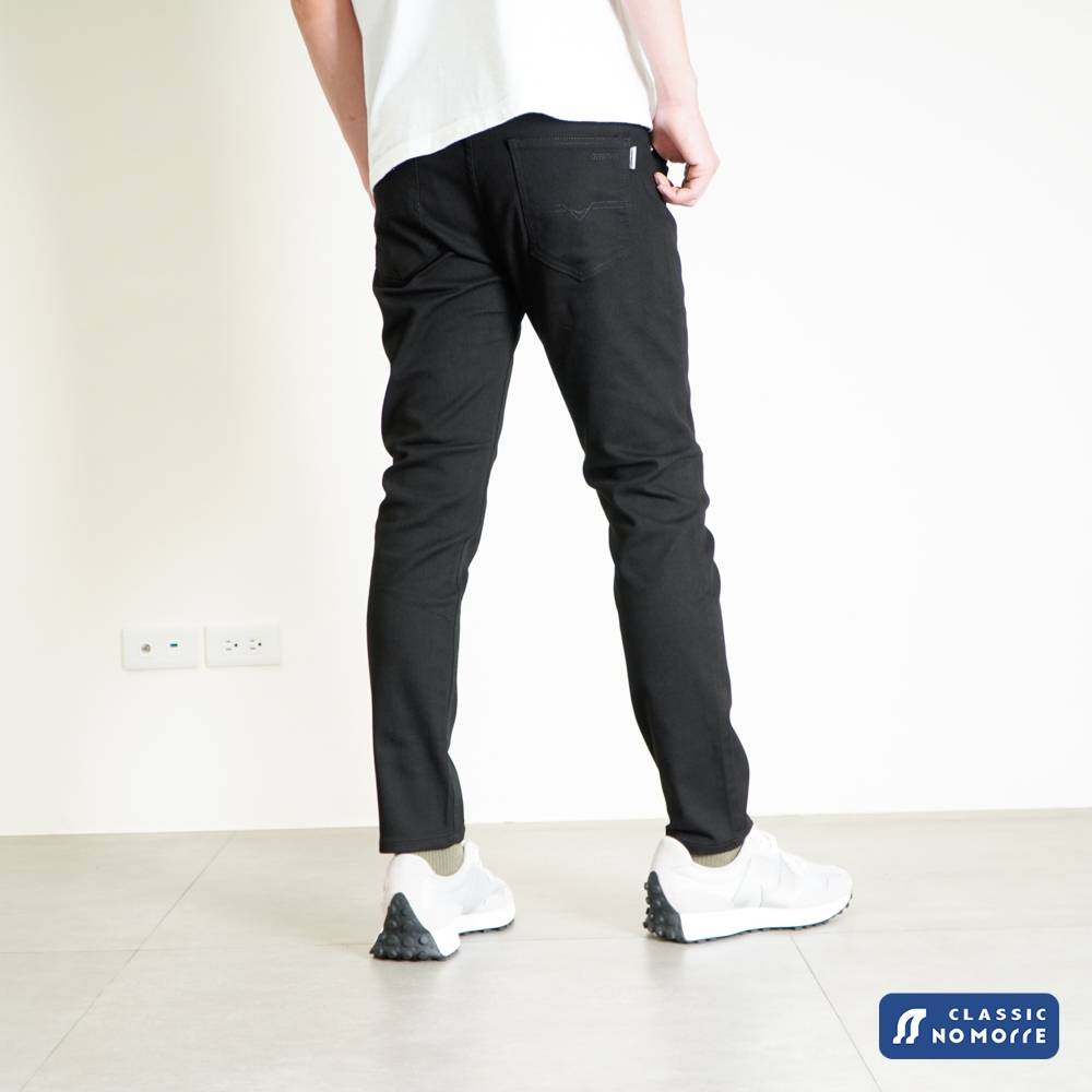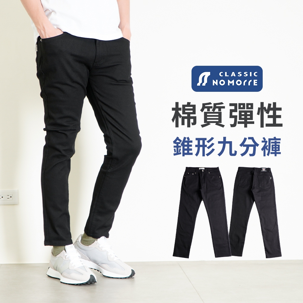 【NoMorre】簡約素面黑色錐形九分褲 YKK拉鍊升級版 黑色長褲 錐形 彈力棉質布料 M-3L 台灣現貨 #5758