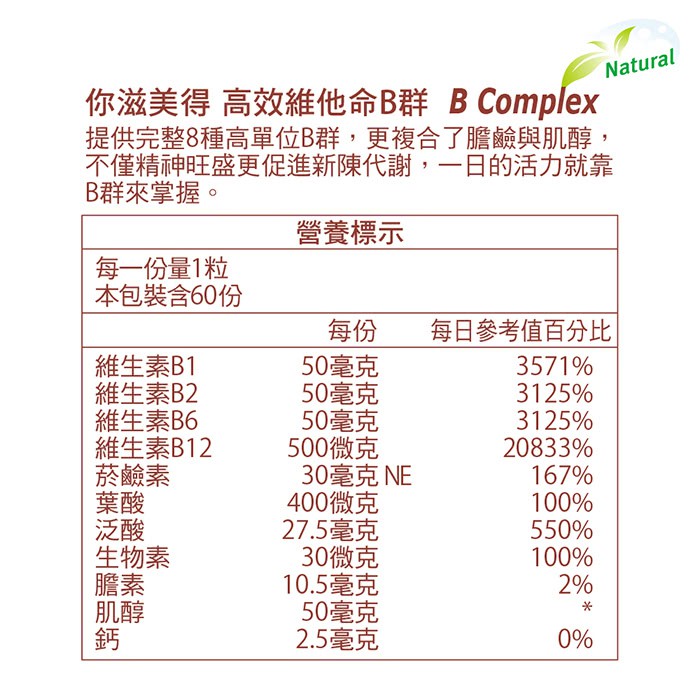 【Nutrimate 你滋美得】強化維他命B群(60顆/瓶) 液態膠囊 60日份 B群 全新版本