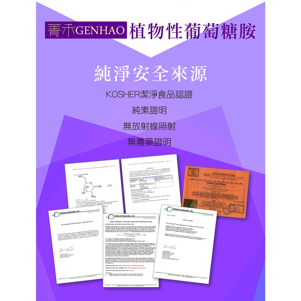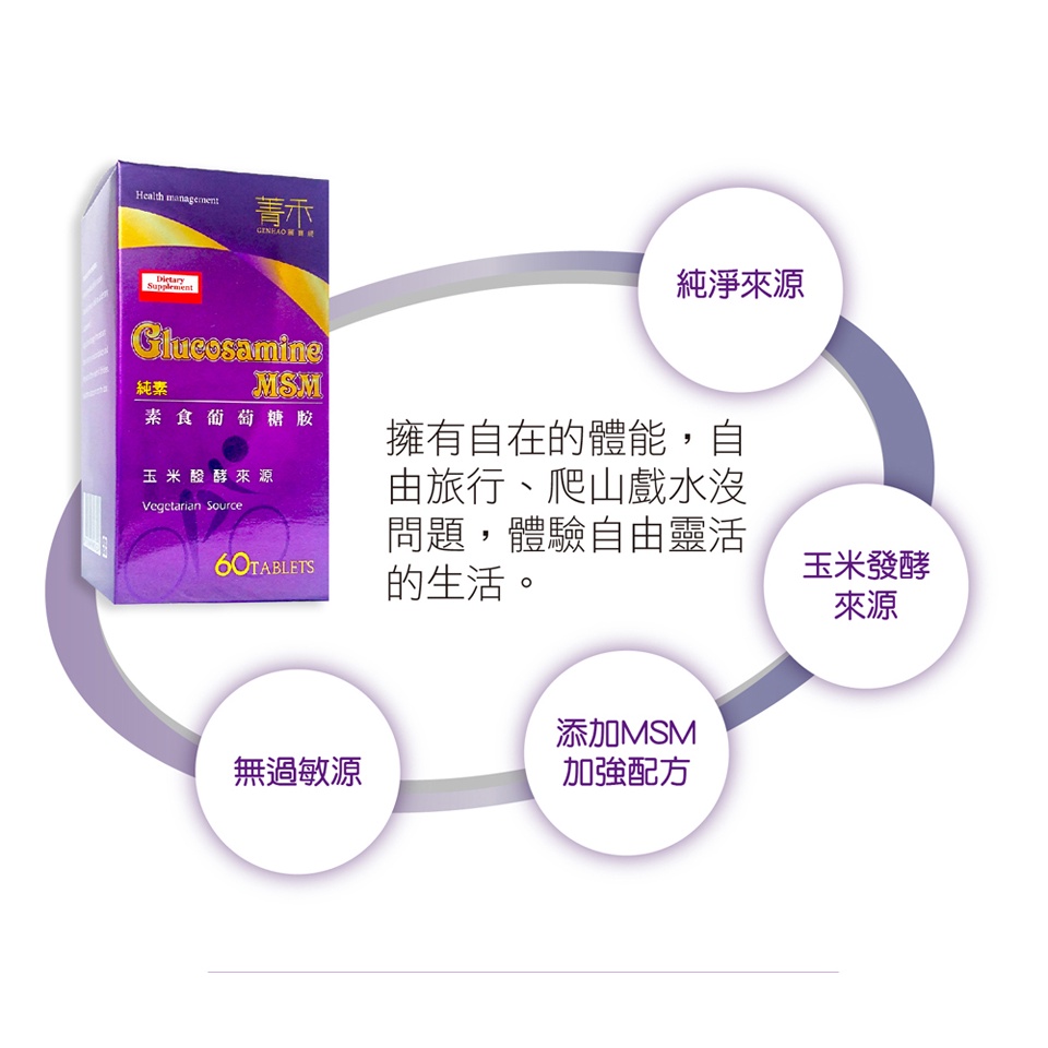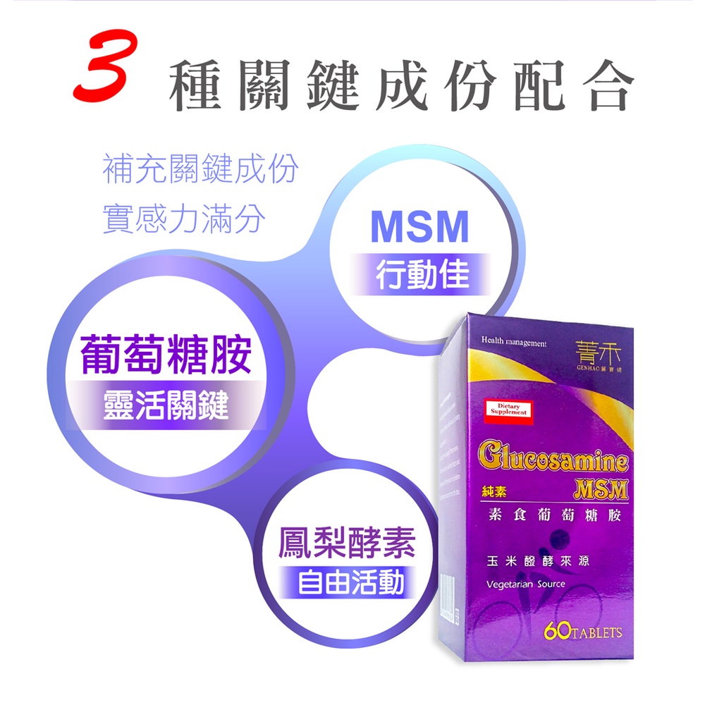 菁禾GENHAO植物葡萄糖胺60粒3盒 純素