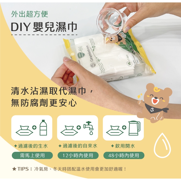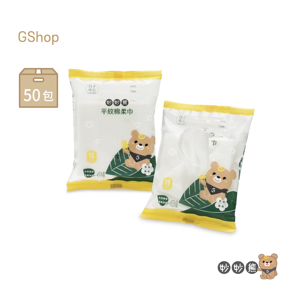 妙妙熊【平紋棉柔巾】(15張/包,50包/箱) 鉅瑋 隨身包 拋棄式 一次性紗布巾 寶寶巾 乾濕兩用紗布巾 洗澡巾