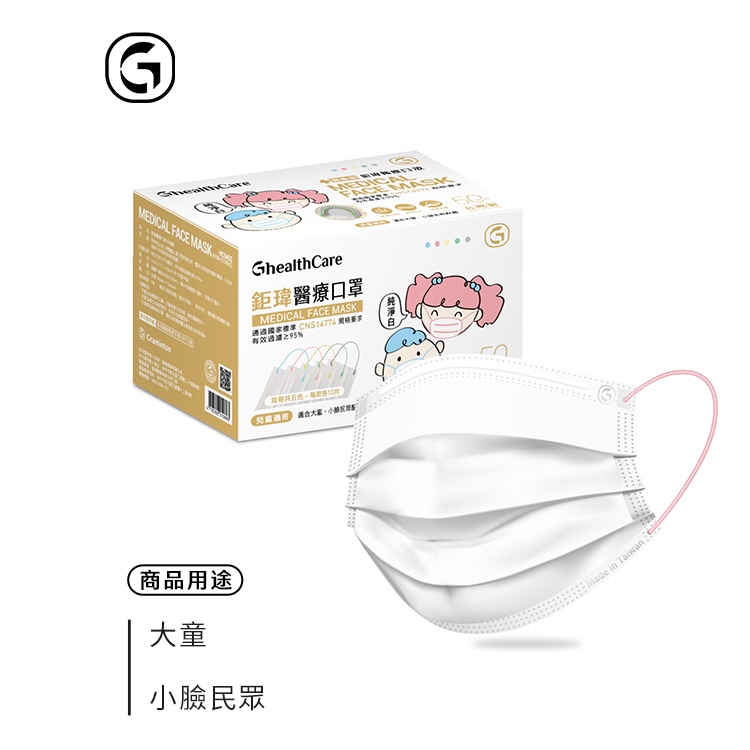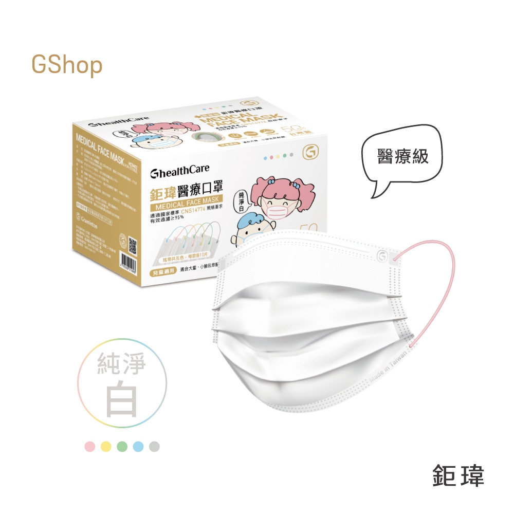 鉅瑋 【兒童醫療口罩-純淨白】(50片/盒) 白色口罩 小臉口罩 鉅瑋兒童口罩 兒童口罩 大童口罩 平面口罩 醫療口罩