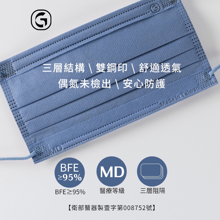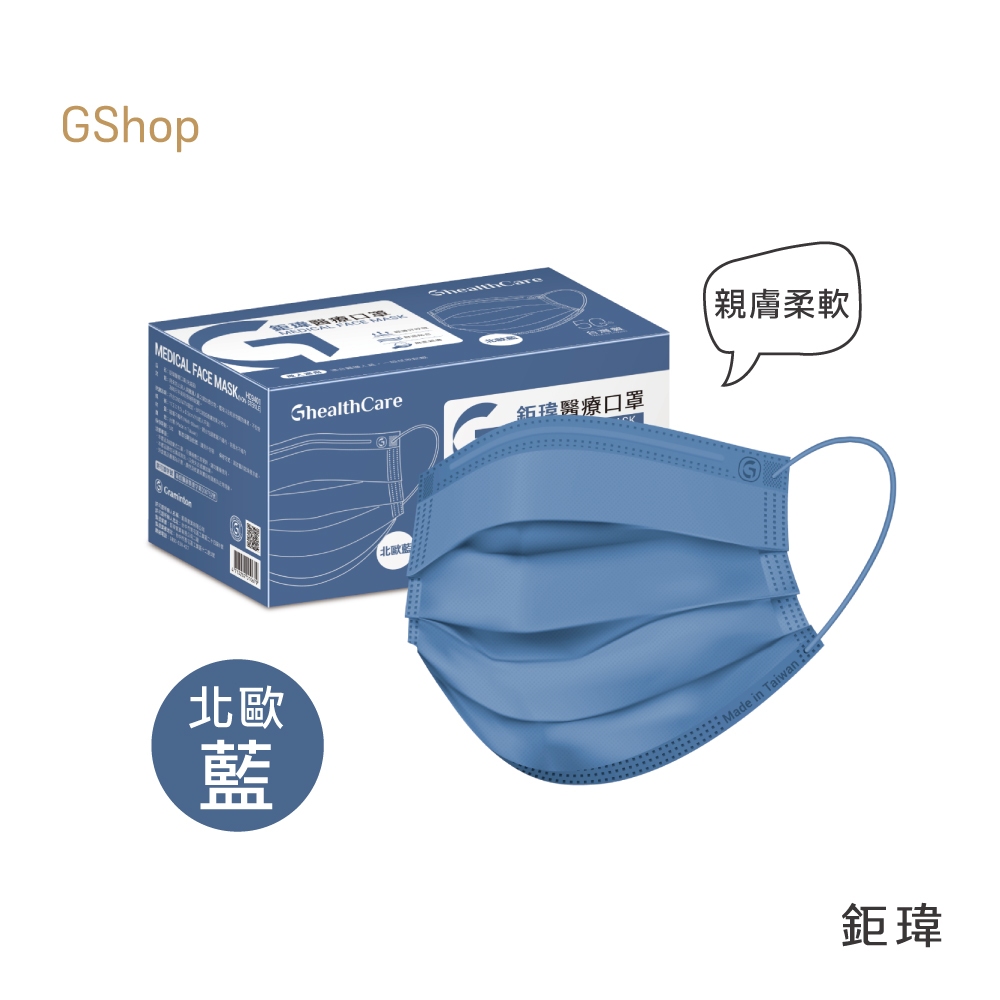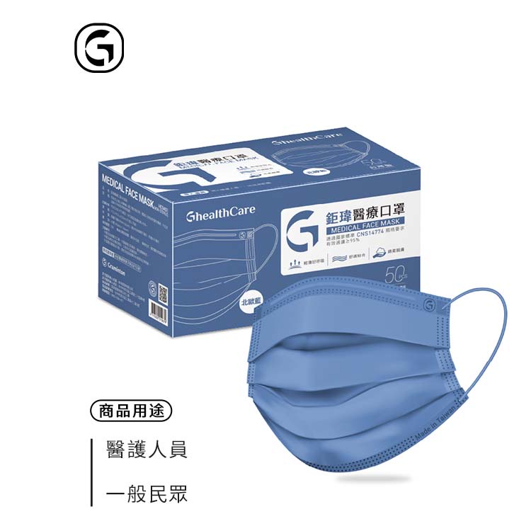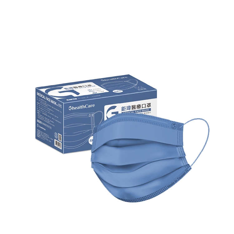 鉅瑋 【純色醫療口罩-北歐藍】(50片/盒) 藍色口罩 拋棄式口罩 平面口罩 成人口罩 鉅瑋口罩 醫療口罩 彩色口罩