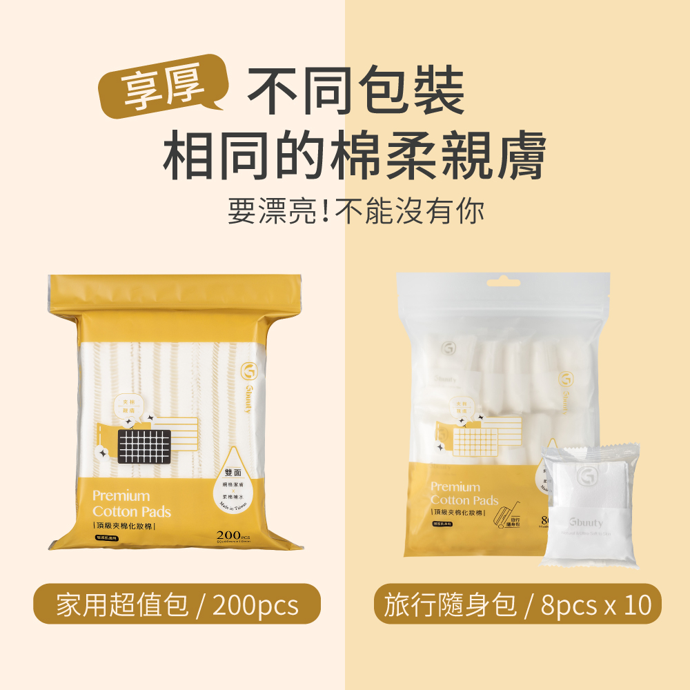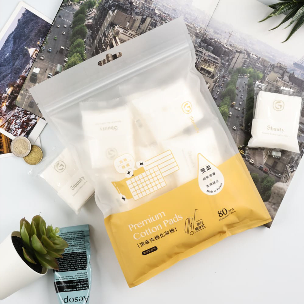 居美媞 Gbuuty【頂級夾棉化妝棉 旅行隨身包】(8片/包,10包/袋)三層 卸妝棉 化妝棉 卸妝 去角質 台灣製造
