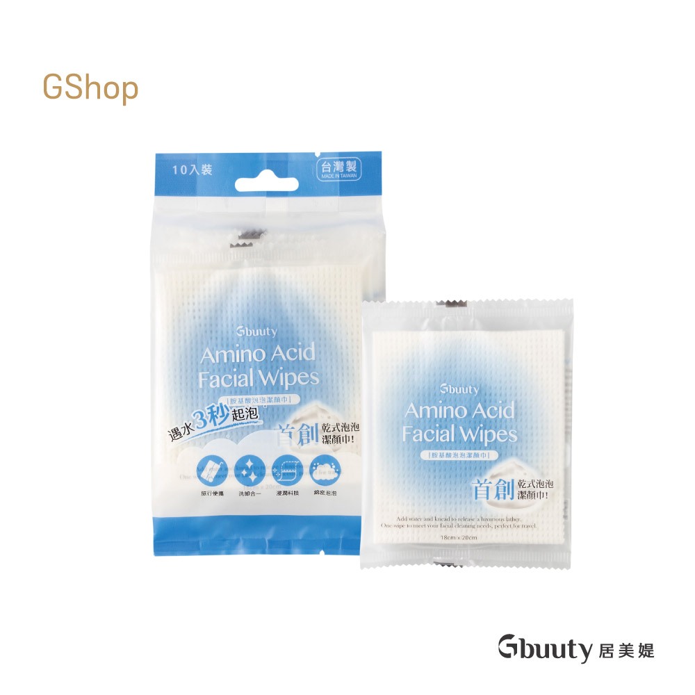 居美媞 Gbuuty【胺基酸泡泡潔顏巾】(10入/袋) 鉅瑋 洗臉巾 洗卸合一 拋棄式 棉柔巾 清潔 台灣製造