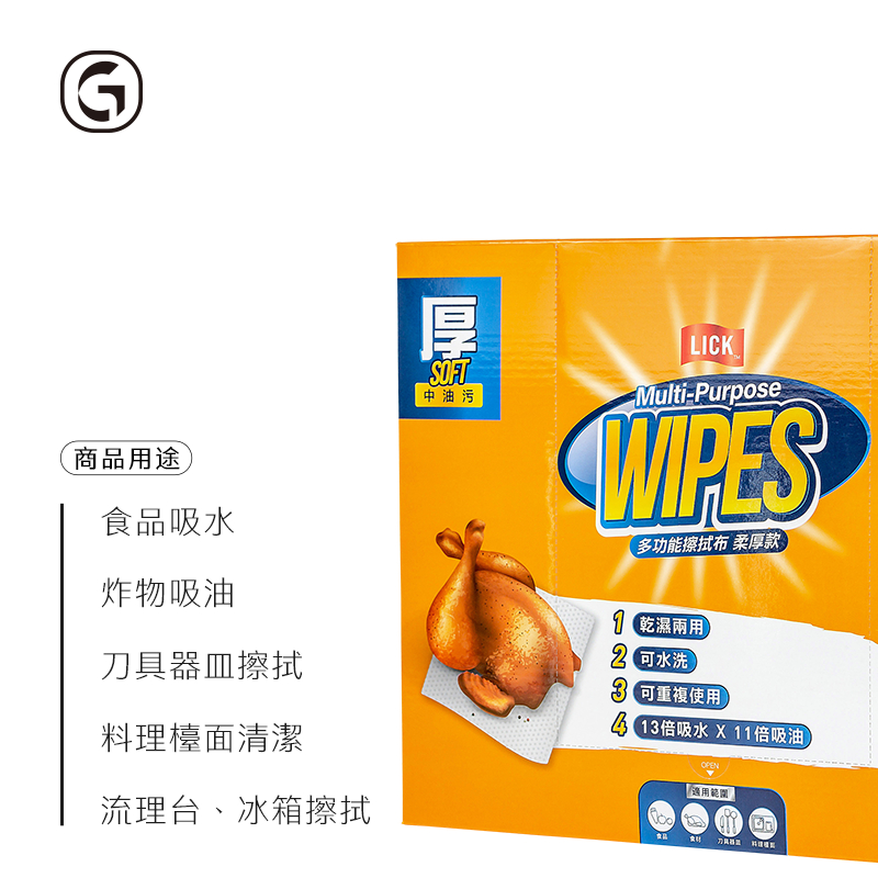 力可潔 LICK【柔厚款擦拭布】(160張/盒) 鉅瑋 拋棄式抹布 摺疊 免洗抹布 廚房抹布 擦拭紙 吸油布 布紙巾