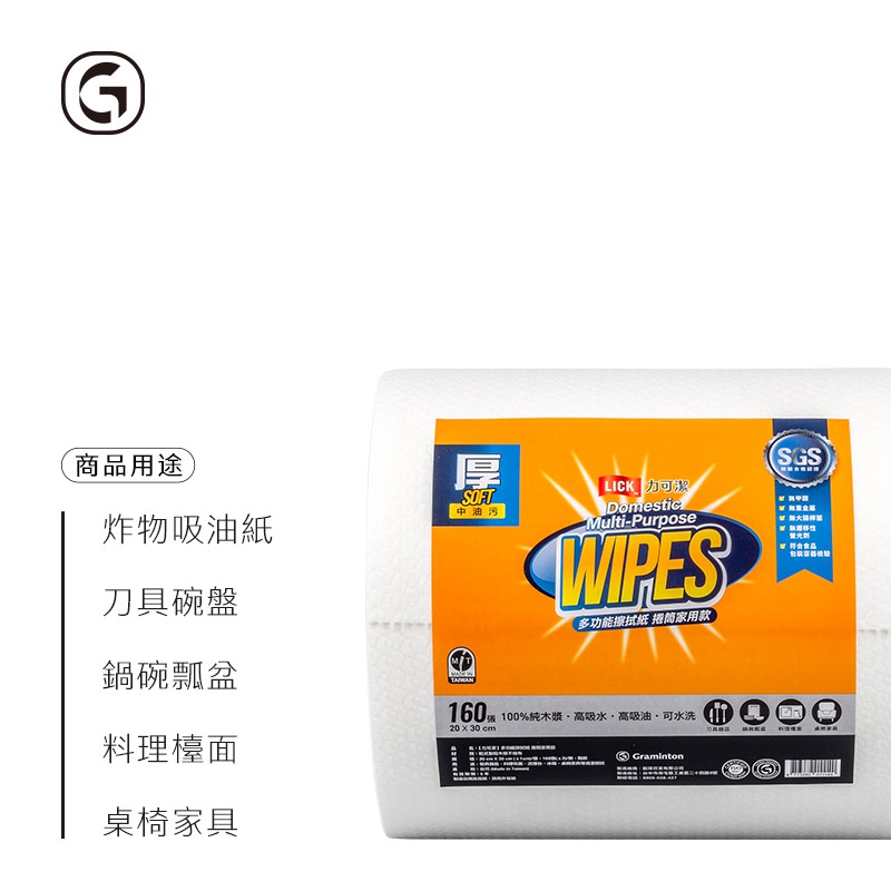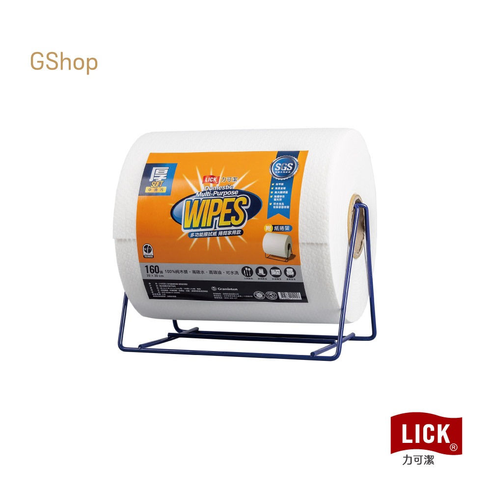 力可潔 LICK【多功能擦拭紙-家用款(附紙捲架)L7102】(160張/捲) 鉅瑋 萬用紙抹布 拋棄式 一次性 紙抹布