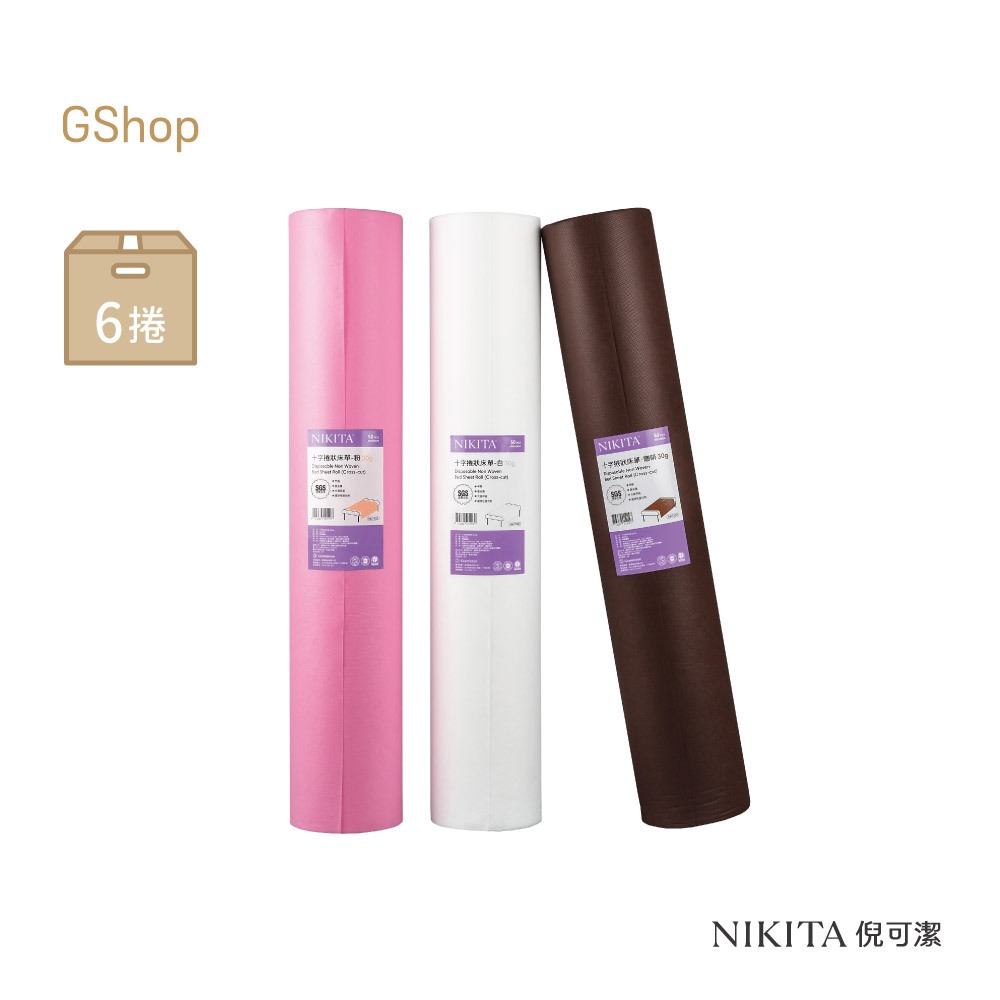 倪可潔 NIKITA【十字捲狀床單-粉/白/咖啡30g】(50張/捲,6捲/箱) 鉅瑋 一次性 拋棄式 床單 床巾