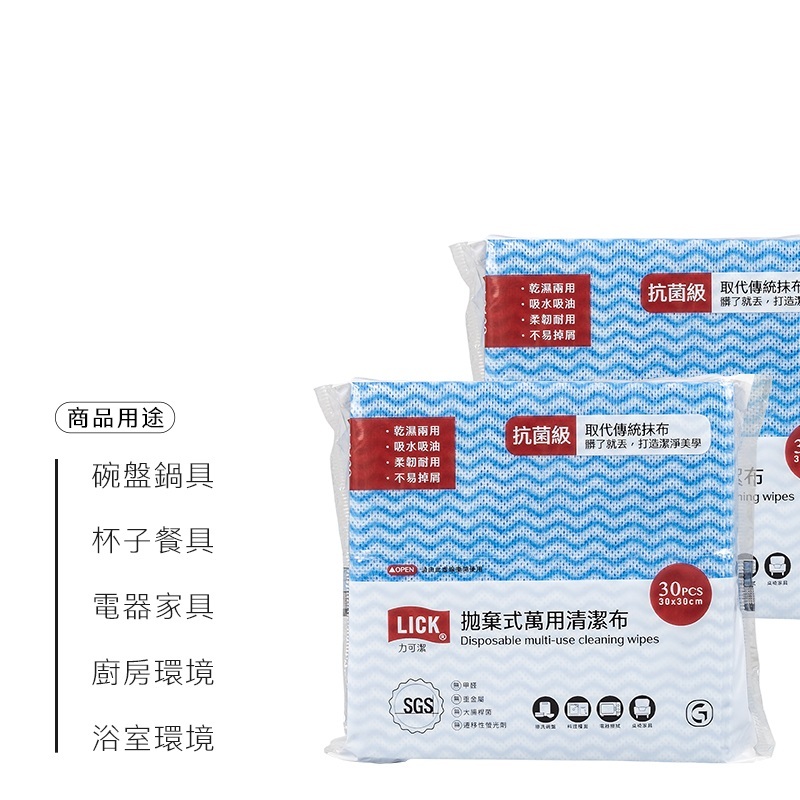 力可潔 LICK【拋棄式萬用清潔布 L8139】(30張/包) 鉅瑋 洗碗布 拋棄式抹布 免洗抹布 懶人抹布 不織布