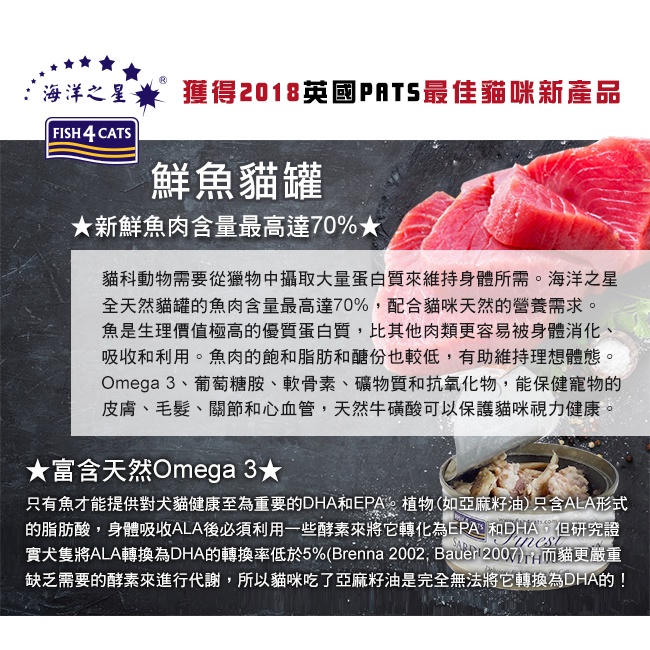 海洋之星FISH4CATS 鮮魚貓罐(70g/罐) 貓罐頭 貓咪罐頭 貓副食罐 貓副食 貓餐罐 貓濕食