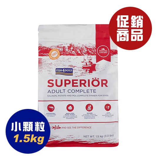 海洋之星FISH4DOGS 強化升級配方(成犬/1.5kg) 小顆粒【即期良品】即期狗飼料 即期狗糧 犬飼料 無穀飼料
