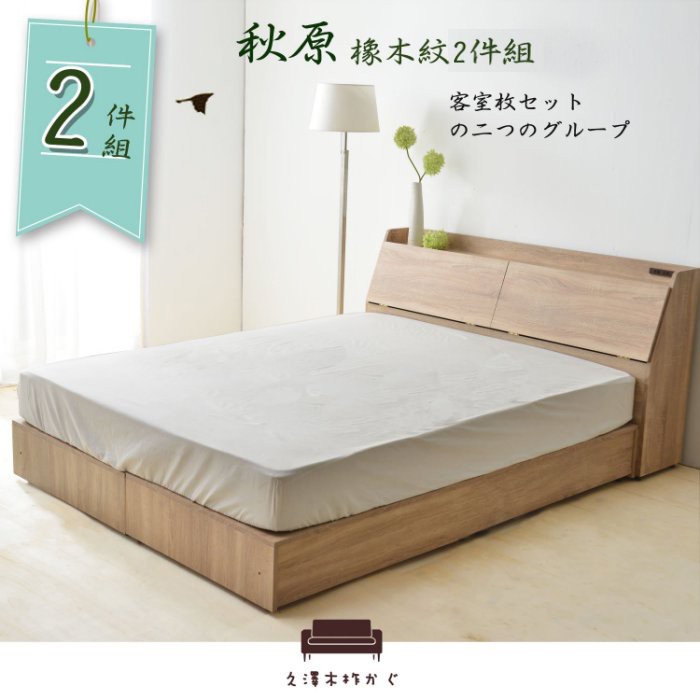 【UHO】秋原-橡木紋2件床組(床頭箱+加強床底)(3.5尺單人/5尺雙人/6尺雙人加大)
