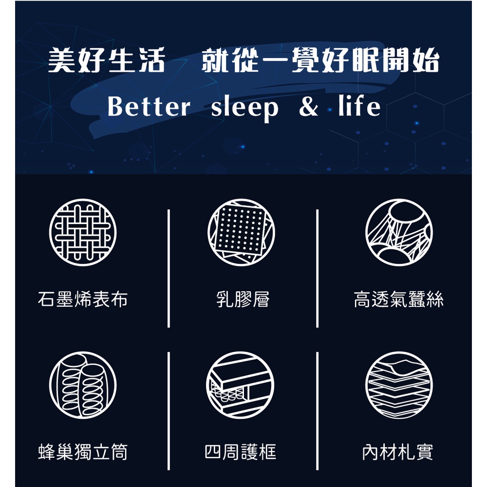 【UHO】石墨烯蠶絲乳膠蜂巢獨立筒床墊(3.5尺單人/5尺雙人/6尺雙人加大)
