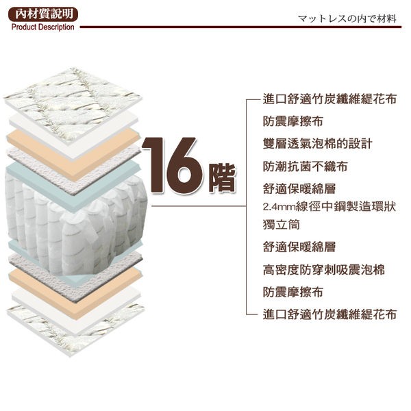 【UHO】Kailisi卡莉絲名床-2.4mm三線備長碳硬式獨立筒床墊(3.5尺單人/5尺雙人/6尺雙人加大)