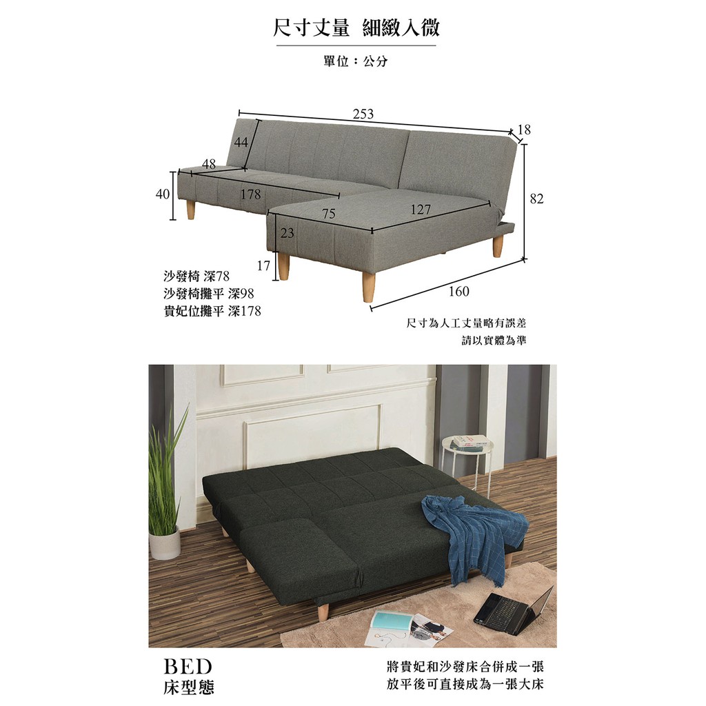 【UHO】台灣製 涼感布 L型沙發床 (四色可選) WUSFB-166-167