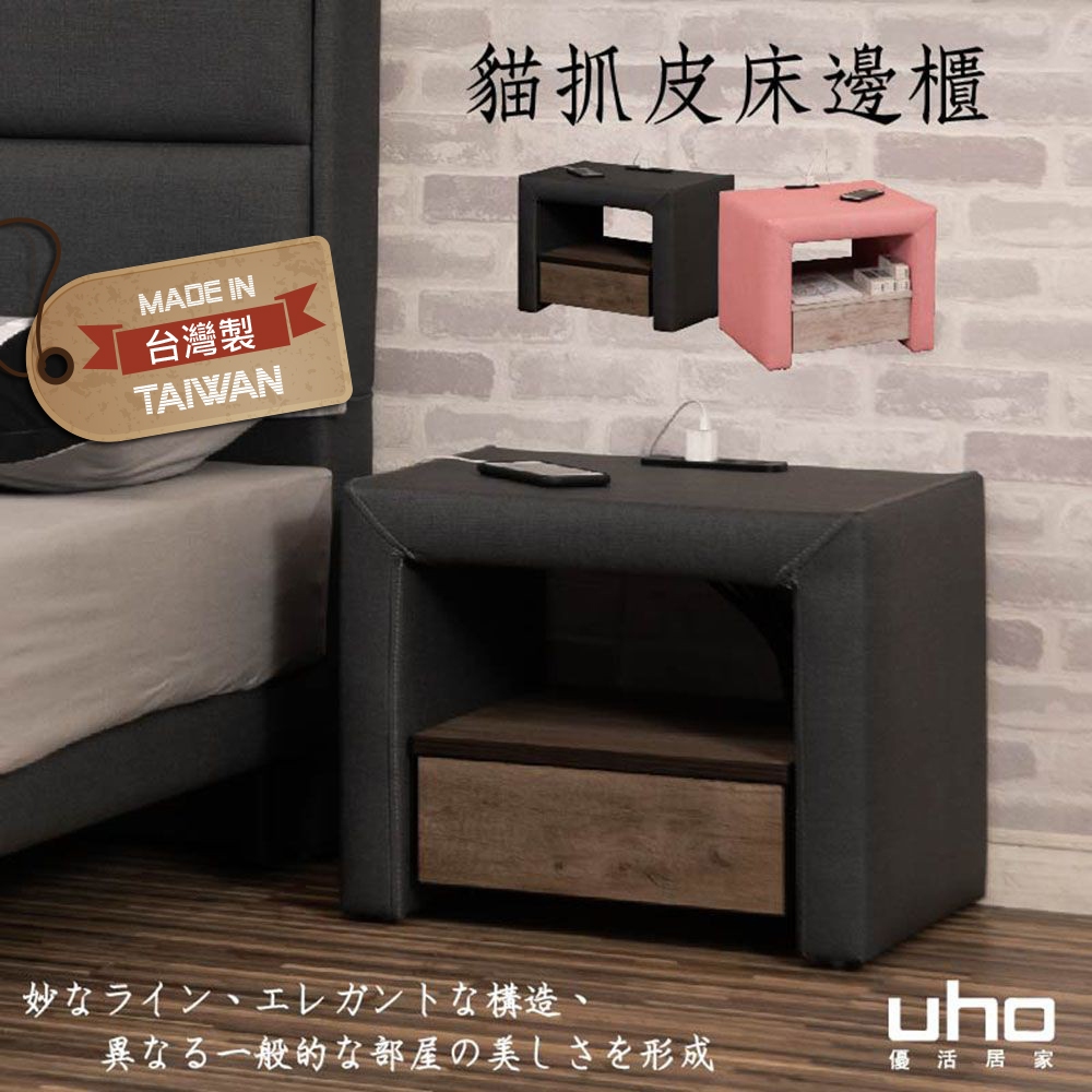 【UHO】台灣製 貓抓皮一抽 床邊櫃 床頭櫃 收納櫃 邊櫃(原版/USB版)