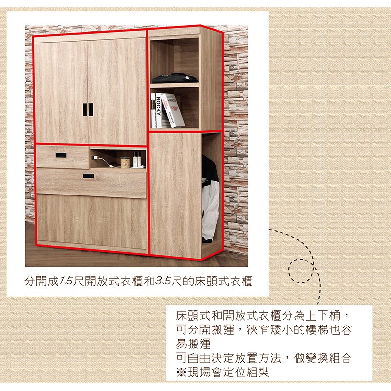 【UHO】秋原5尺床頭式衣櫃