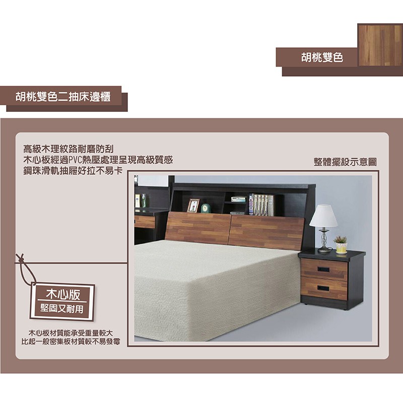 【UHO】胡桃雙色二抽床邊櫃 床頭櫃